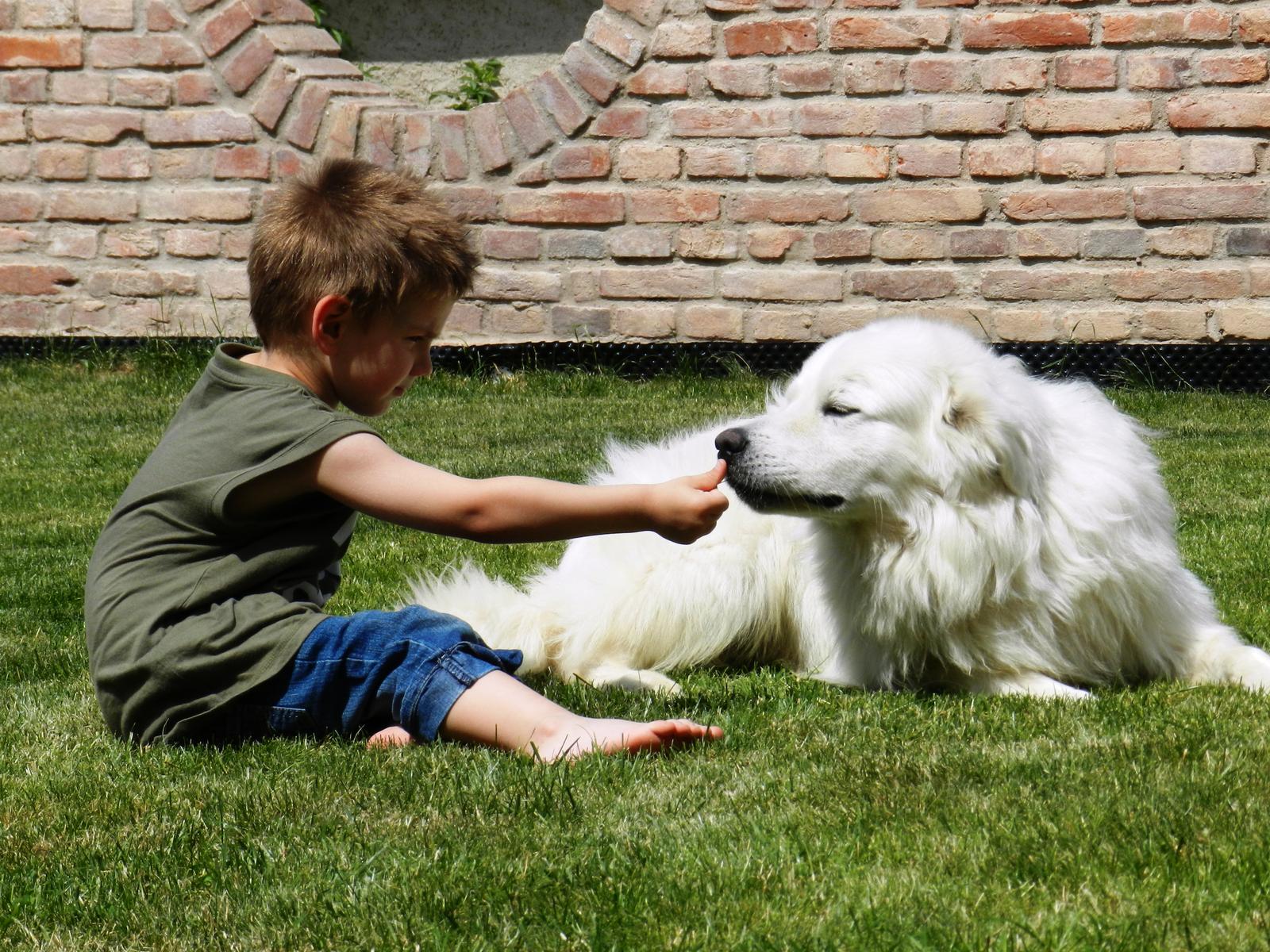 My mame rocnu fenku, labradorku. Krpec vsade hovori, ze to je jeho Brita 😀 Mali sme 6rocneho kocura, ktory nam bohuzial pred pol rokom zomrel. Kocur bol bohovsky, aj ked syna "trpel", lebo samozrejme on bol v domacnosti skor. Napriek tomu sa spolu vedeli zahrat - syn prednim utekal so snurkou a kocur ho nahanal... 🙂 Bol majetnicky a ine zvierata s nim nemohli existovat. Nemal problem zbit aj vacsich psov, ak sa priblizili k dveram domu. Syn (3,5) si ho stale pamata, spomina ho. ale vie, ze je "v nebicku" a pozera na nas. 🙂 Akurat tento tyzden chce, aby som mu zatelefonovala (kocurovi) , aby nam poslal macicku 😝 😀