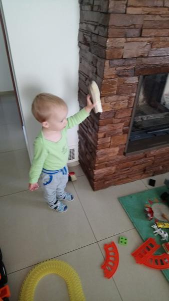 Môj syn je ešte v štádiu, keď ho do upratovania nemusím zapájať, robí to sám a dobrovoľne. Výsledok je niekedy rozpačitý, keďže má len dva roky, ale snaha sa cení. Je pedant. Neznáša, keď je niekde nejaký papierik alebo smeť. Hneď to nesie do koša. Raz mi vyhodil 10€, prišli sme na to neskoro, to už sme kývli smetiarom z okna.