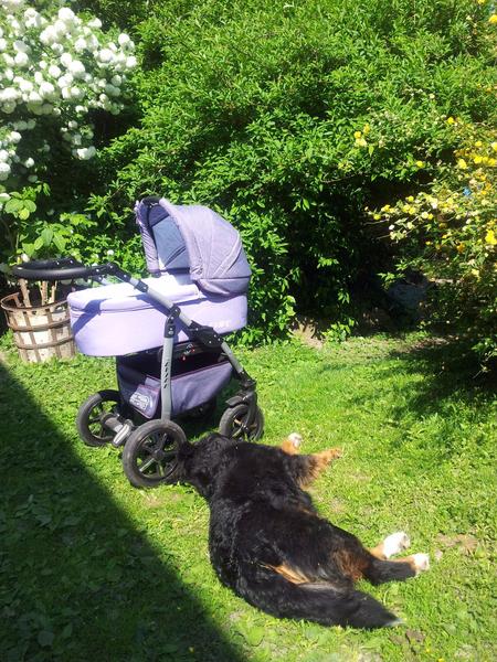 Naša 50kilová bezpečnostná hliadka 🙂 Nik cez ňu neprejde - ani len mačka. Nie..nieje agresivna, ona je rodený ochranca. Ked sa drobec učil chodit, sla popri nom aby ho podopierala. Ked ako bábo spinkal na dvore, ani sa od neho nepohla. A predtím?!...ležala vedla mna, s hlavou na brušku a čakala - na najlepšieho partáka 🙂 Ona je naš pocit bezpečia - ak ho nestihnem zachytit pri pade, ona sa pod neho hodí aby mu zjemnila dopad. Je to naša hrdinka. 🙂