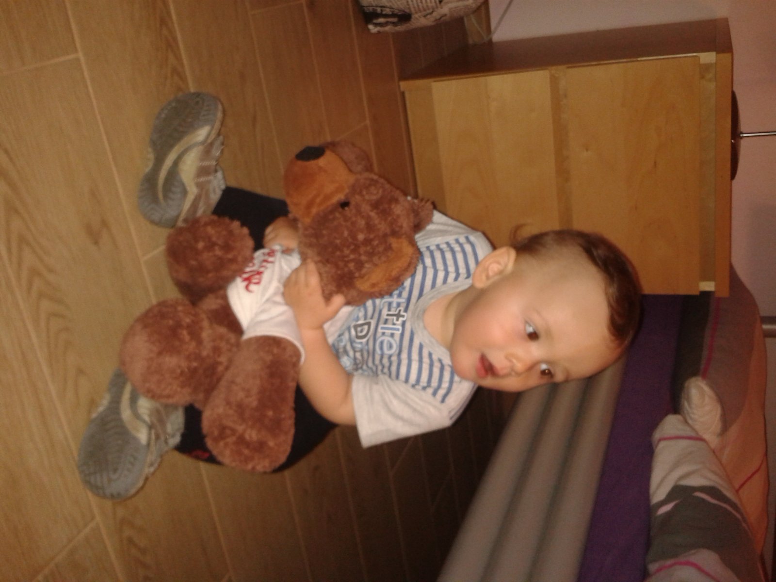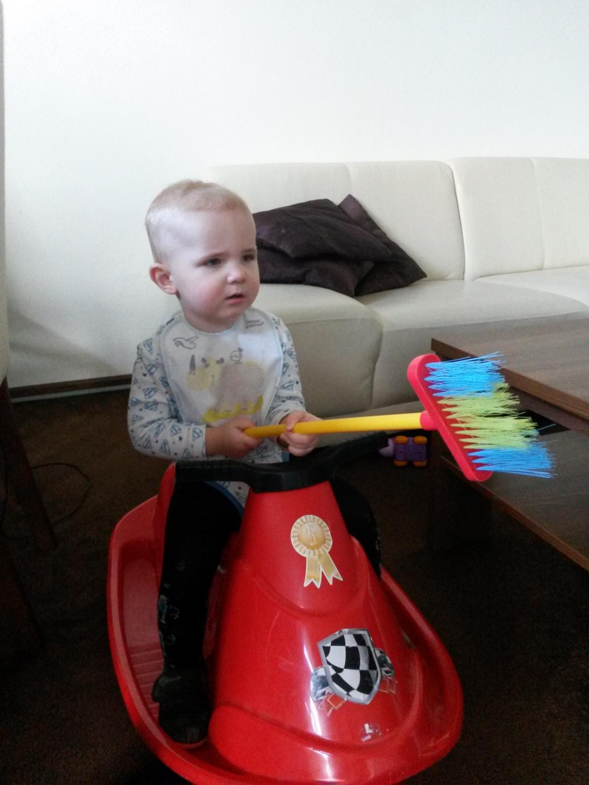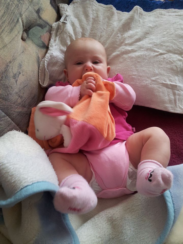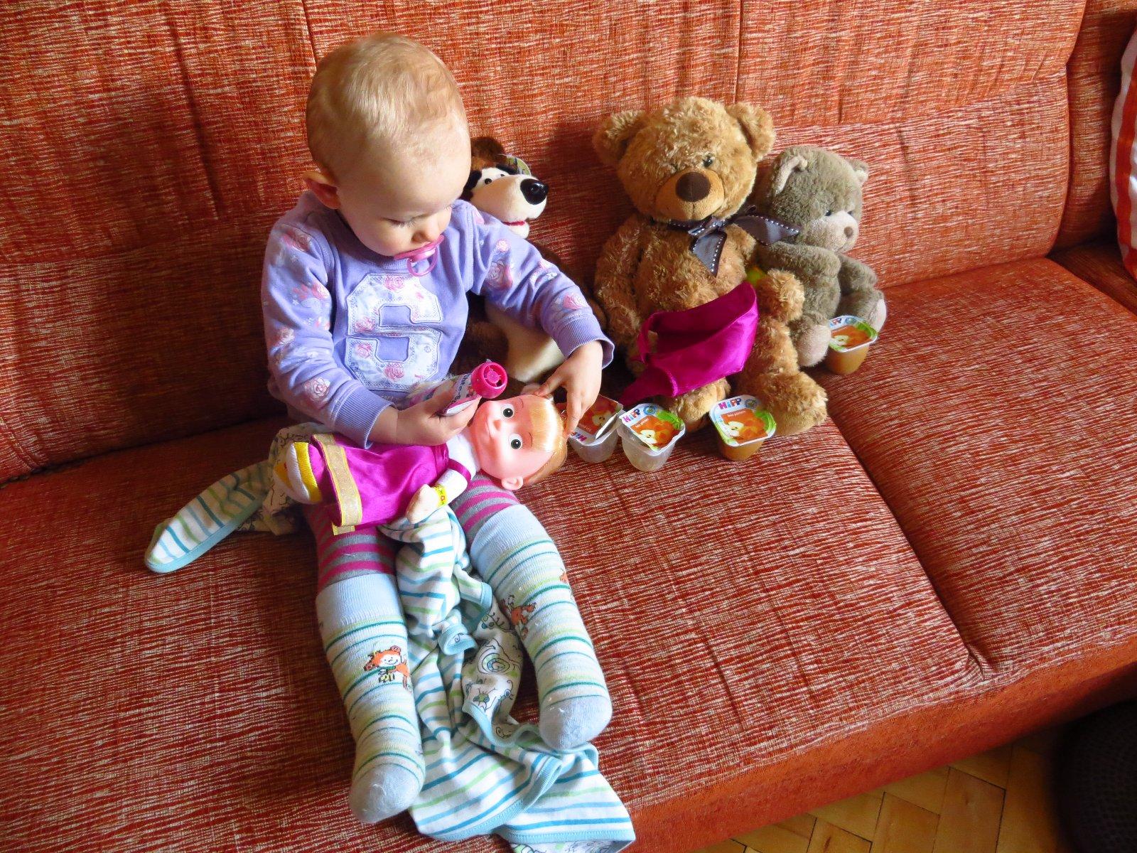 Momentálne je naša najobľúbenejšia hračka hojdačka a metla 🙂 V postieľka zaspáva s hrejivým zajačikom 🙂