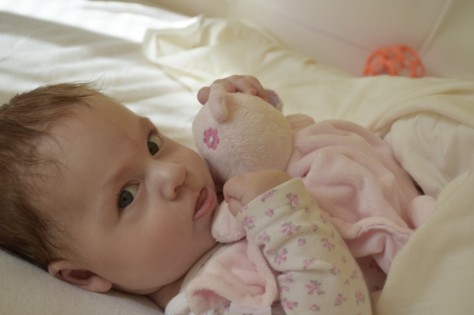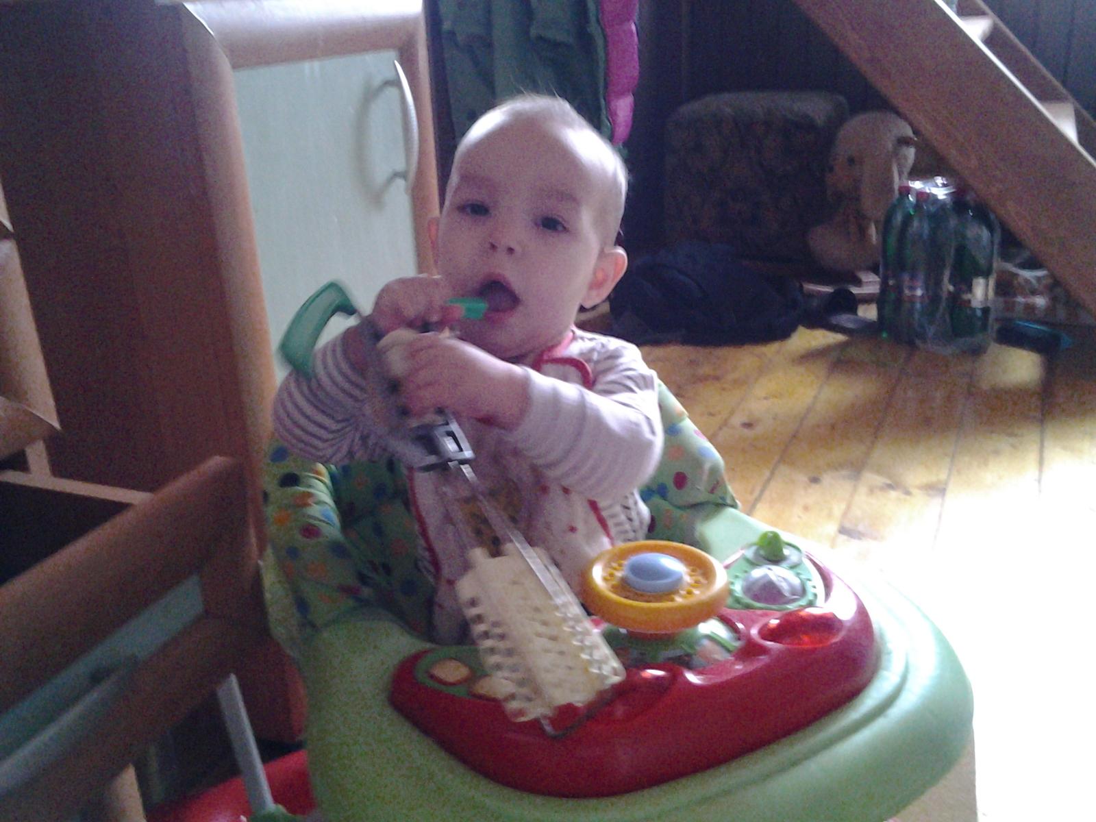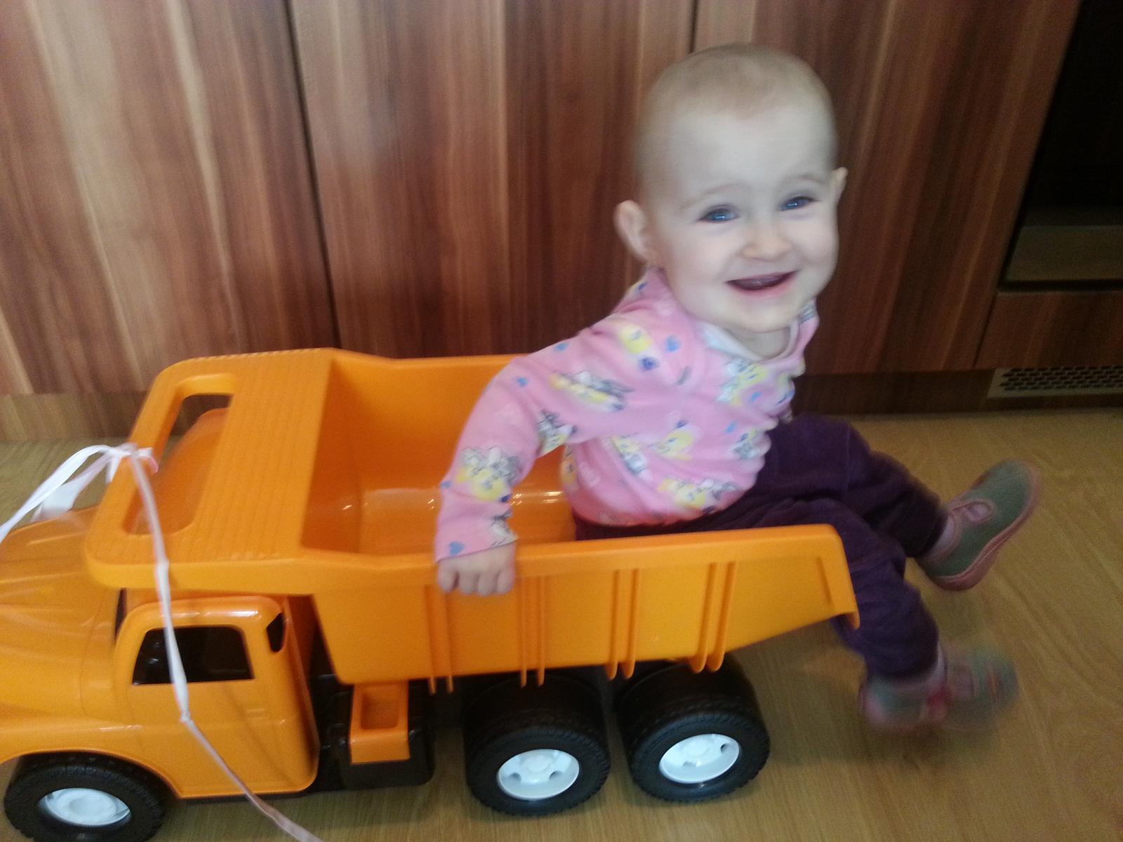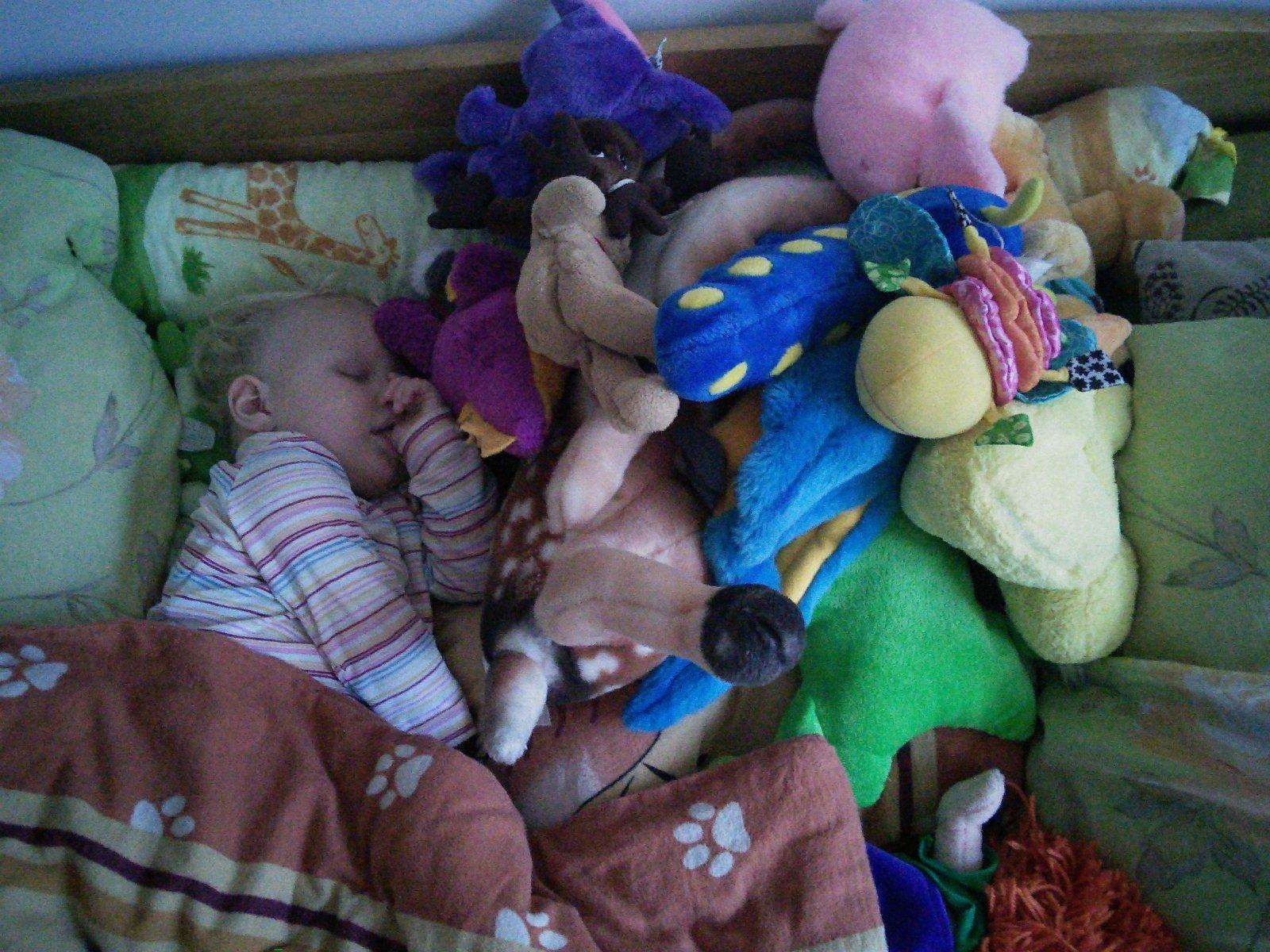 Momentálne je naša najobľúbenejšia hračka hojdačka a metla 🙂 V postieľka zaspáva s hrejivým zajačikom 🙂