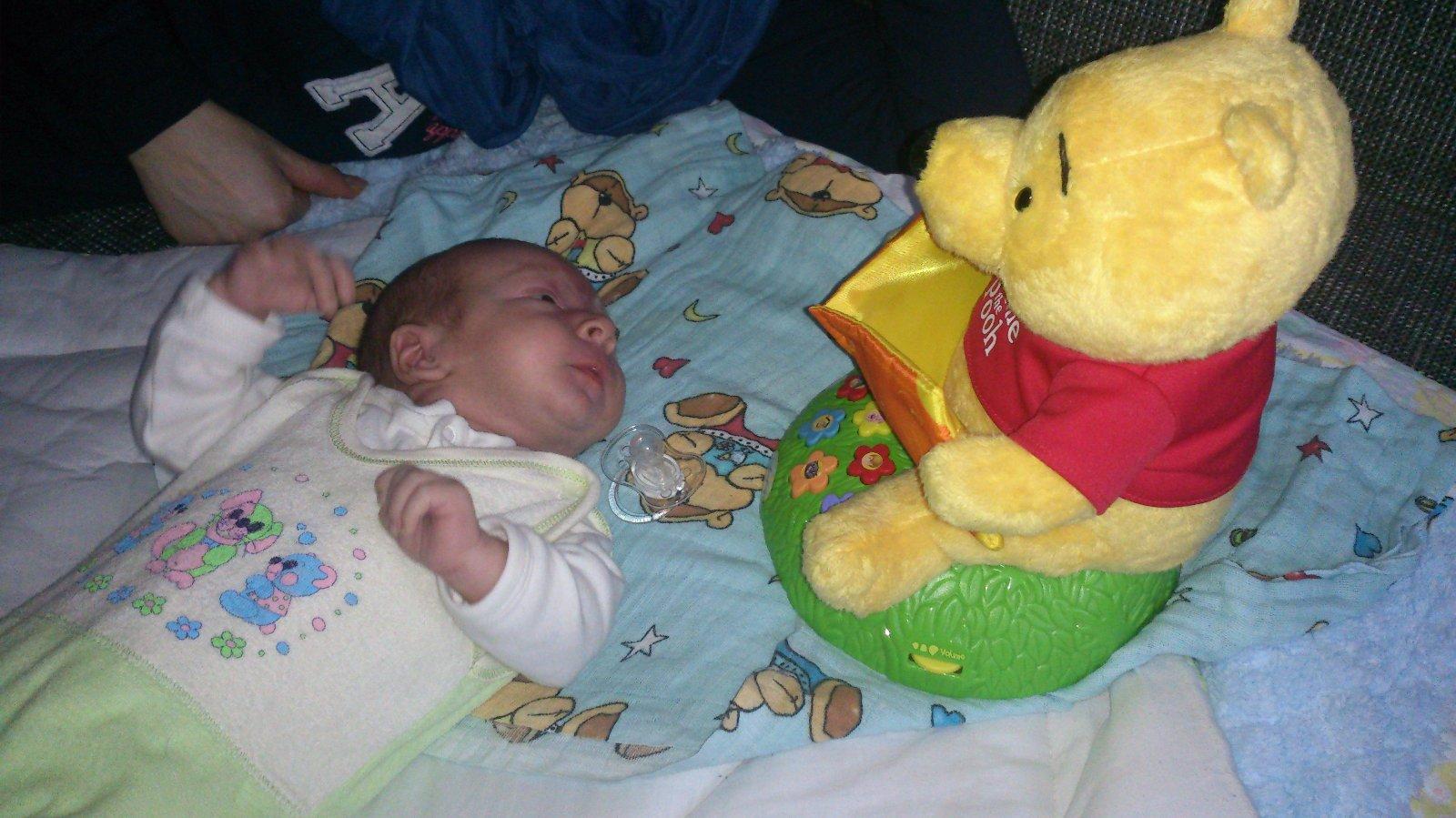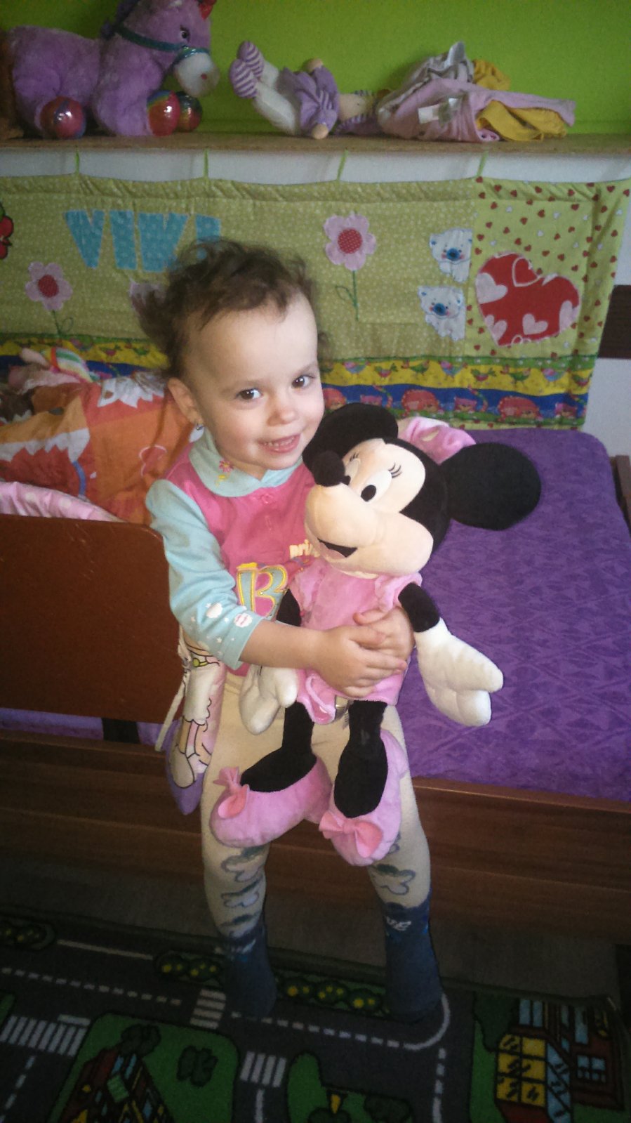 Naša naj hračka od Vianoc je Minnie 🙂 Stále s ňou spí. To je prvé čo berie do postele, až tak si spomenie na čajík a pusu na dobrú noc 🙂 Zažívame s ňou to, že si ju berie so sebou, keď ideme niekam autom. A momentálne k nám pribudla aj sestrička Simonka ( 12 dní ), tak tu berie tiež za živú hračku 🙂