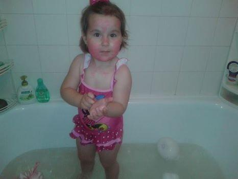No ja mam teda skoro 3 mesacnu dcerku, no ale vo vode je expertka ;) Vzdy, ked sa ide kupat do vanicky tak ju vyzleciem dohola a ona hned vie ze ide do vody. ;) Zacne sa rehotat a ked ju dam do vanicky, zavne kopkat a az tak vrcat ;) Umyvame detskym mydlom kazdy druhy den a aj sapon pouzivame, kedze moja mala ma haro od narpdenia ;) no a tu je potom vysledok ;)
