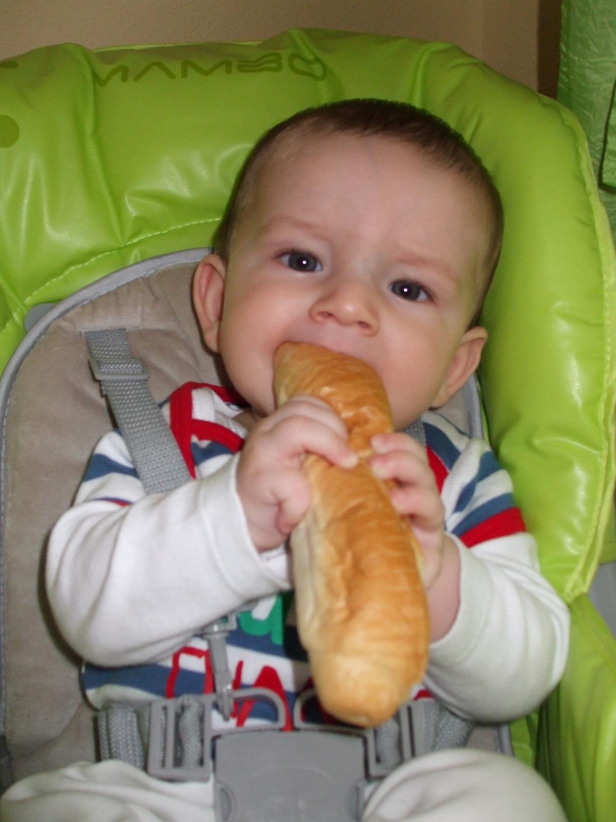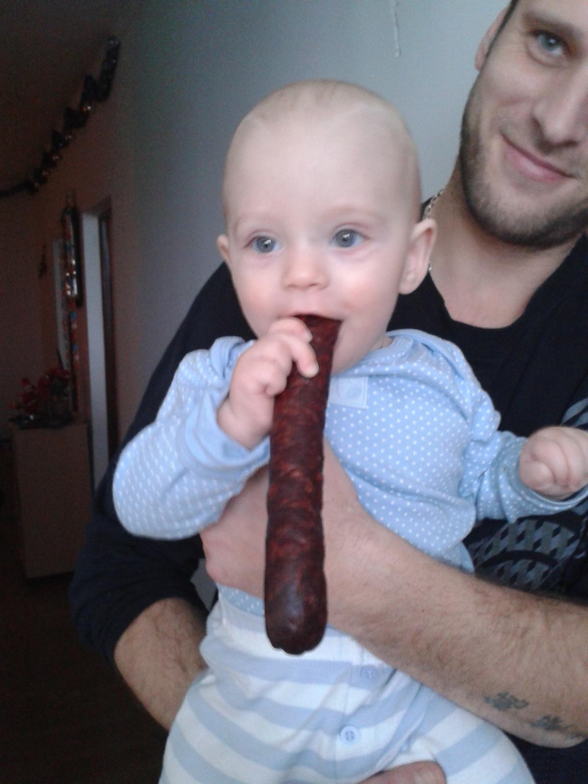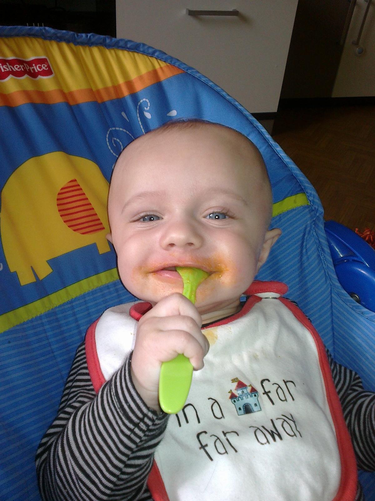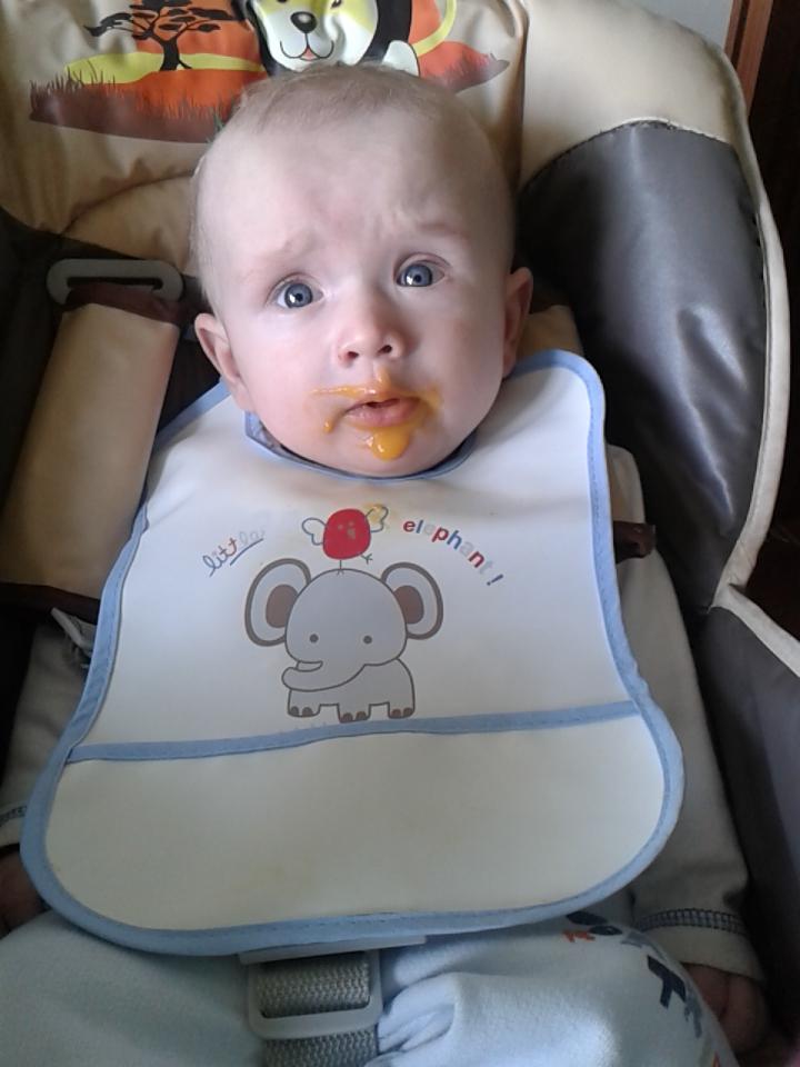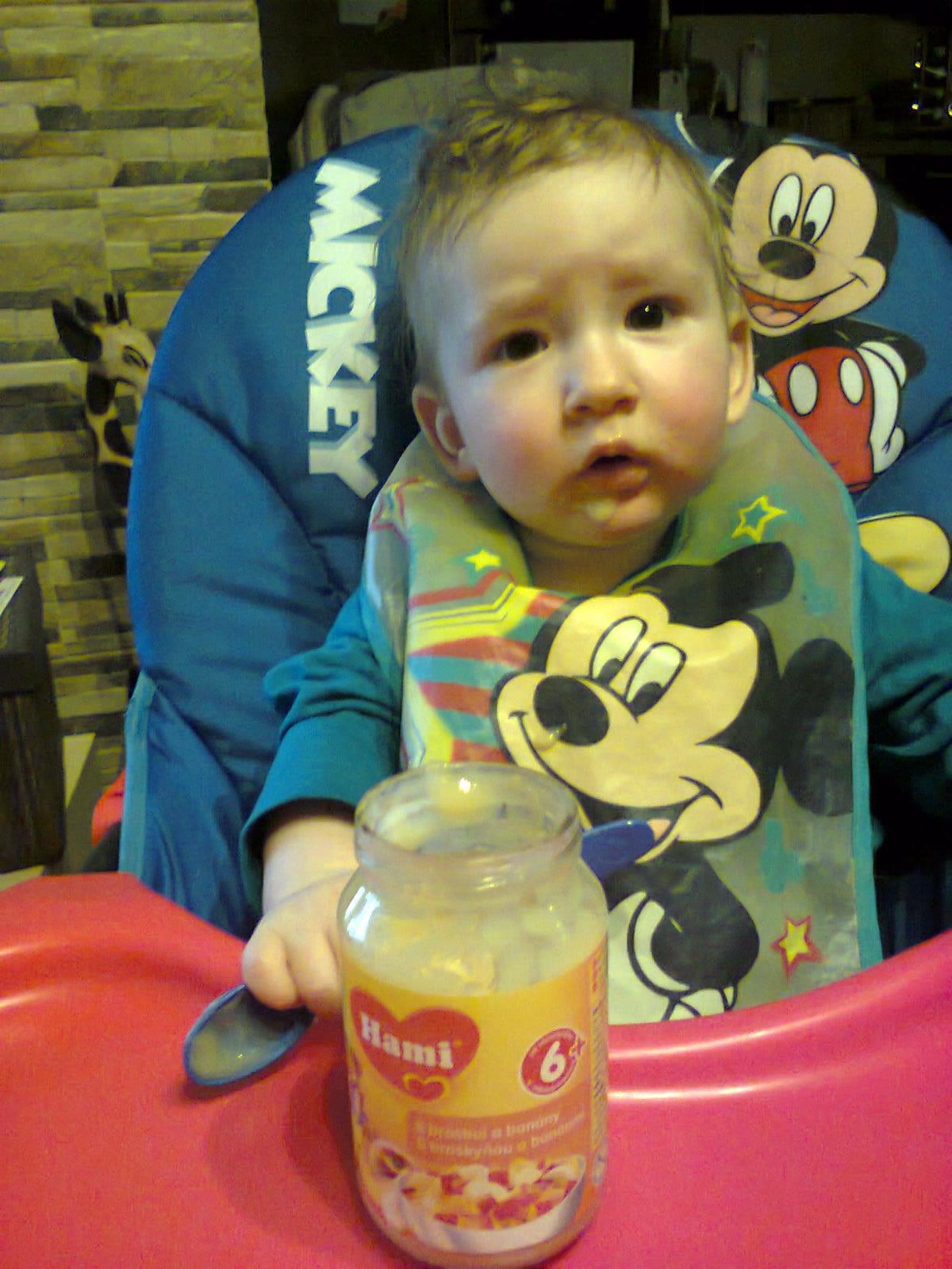 Najskôr som sa naučil papať mrkvičku a teraz už papám všetko čo na 8 mesiacov môžem 🙂 a niekedy aj pohárik chutí 😀