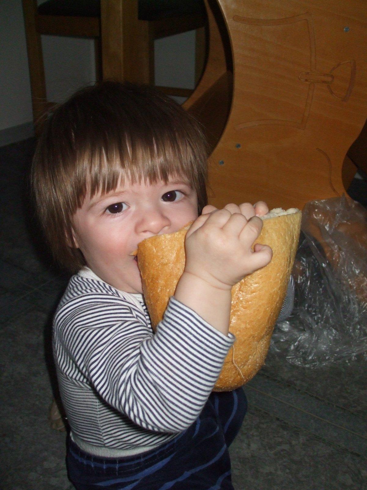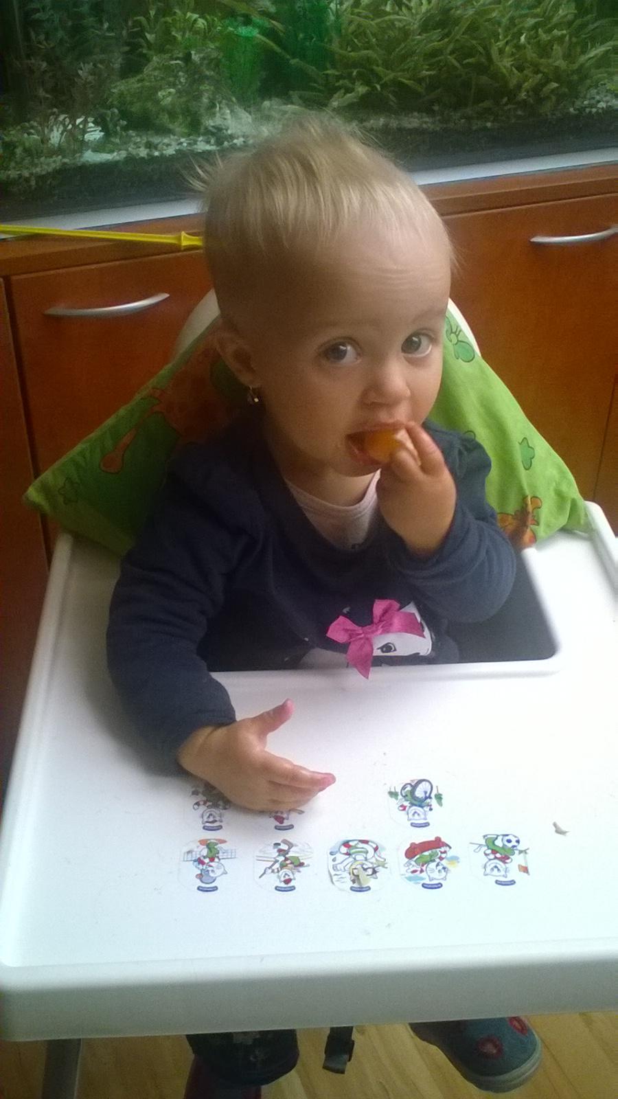 tak moj mladsi syncek rád papá, a hocico 😀 mrkvu, masko, chlieb, jogurty ....vsetko mozné (nastastie aj zeleniny, ovocie atd.) ! no ale super mnamka je napr. : cerstvo pecené medovniky u babky (1.foto) alebo 1. narodeninová torta (2.foto) . Starsi neni velky pakác, ale zas rád pomáha v kuchyni (3.foto) , no ale tortu si dá aj on (4.foto)