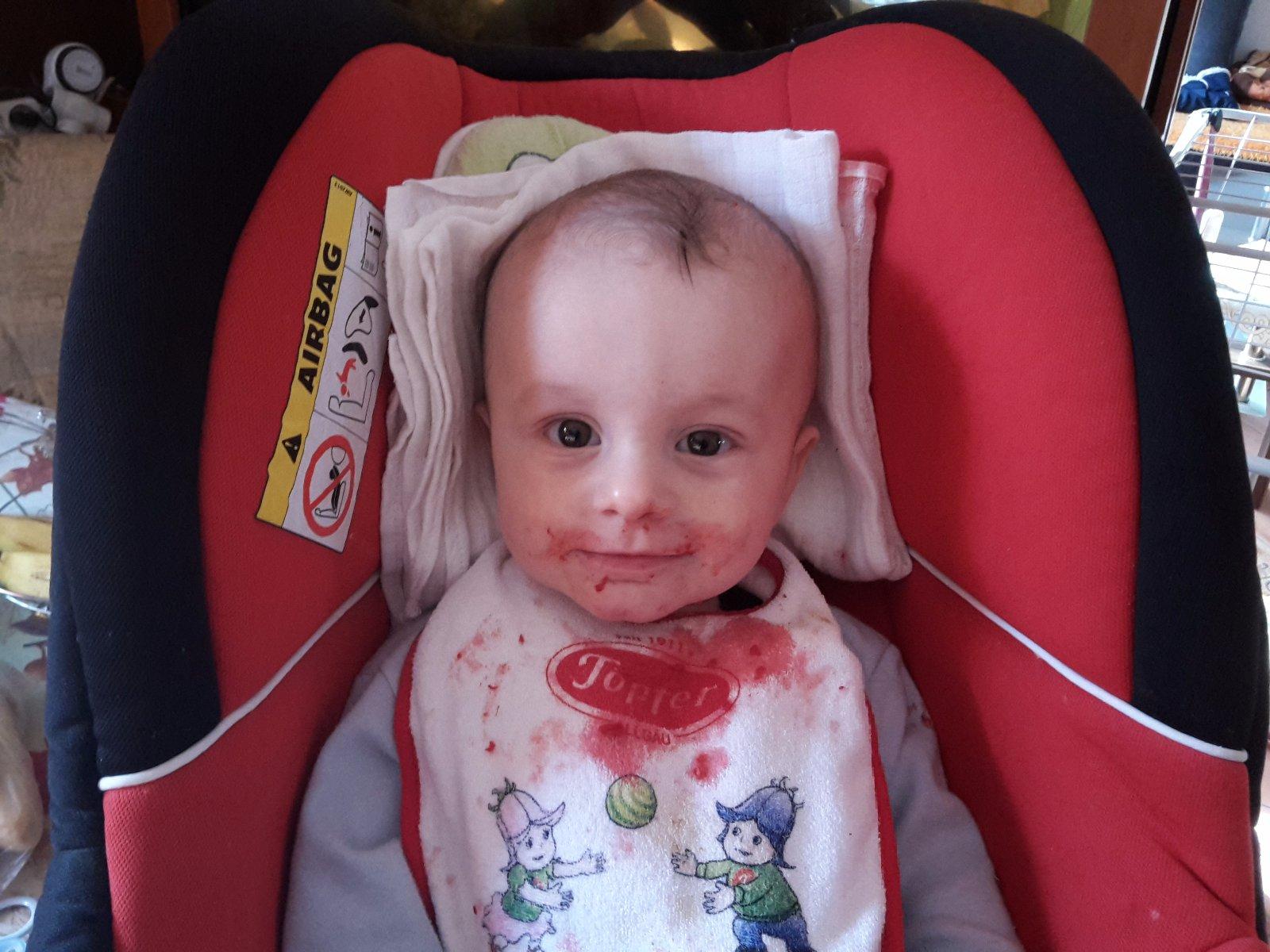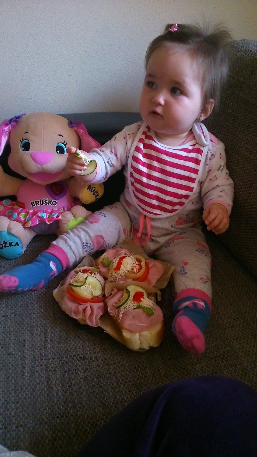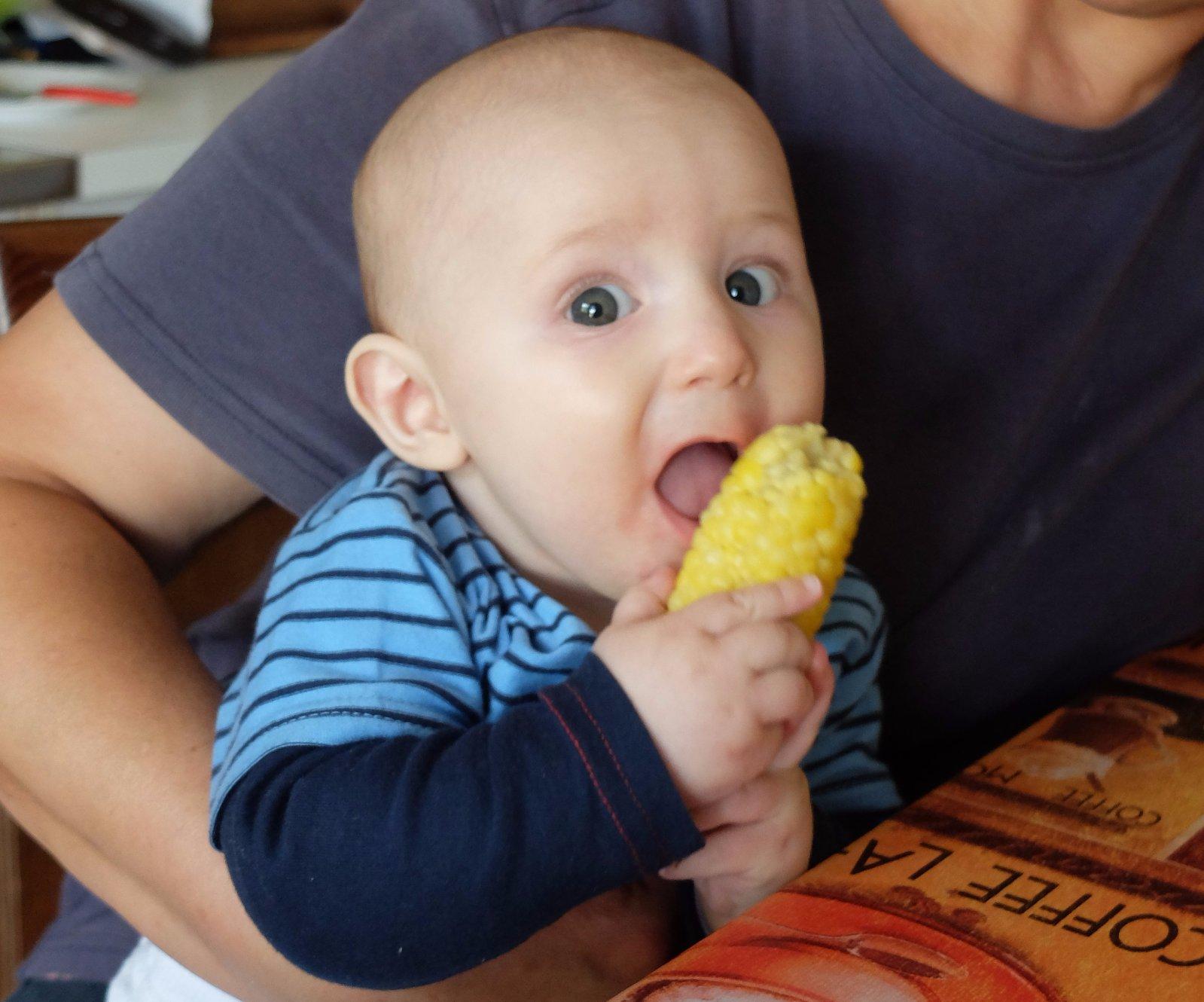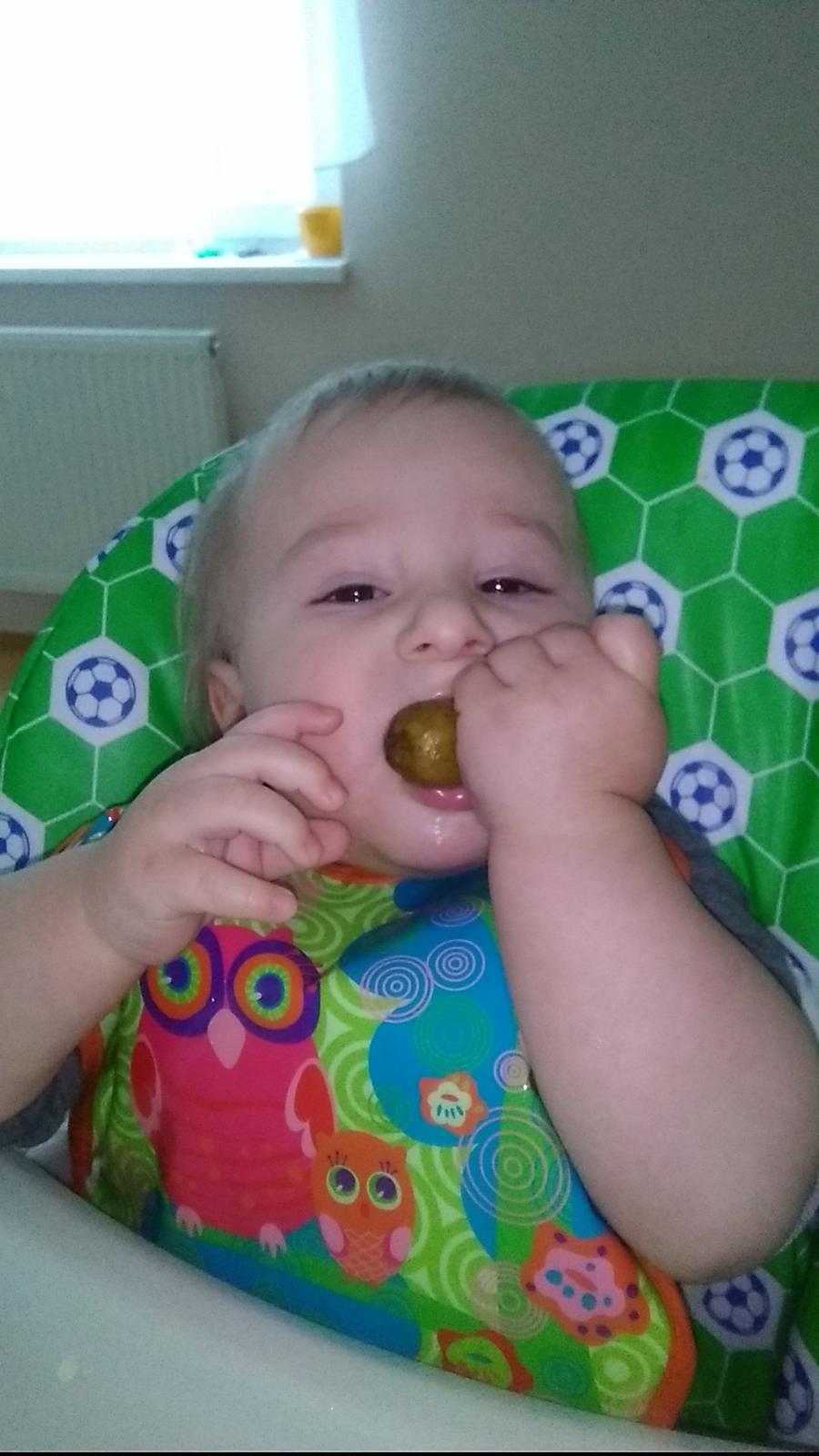 Nas Marco prichyteny s kukuricnou chrumkou 😀Pokial ide o jedlo,nie je nejaky vyberavy a vdacne spapa vsetko,co mu navarim,snazim sa mu hlavne varit zdravo,papa vela zeleninky,maska aj ovocia,na veceru obilninove kase 🙂Zo zeleniny ma najradsej cuketu a zelene fazulky,z ovocia hrusky,ale nepohrdne prakticky nicim 🙂Ma velmi rad aj prikrmy od Hipp,tie ovocne mu teraz davam takmer kazdy den,aby mal pestru stravu,kedze ovocim,ktore sa predava v obchodoch nie som velmi nadsena,najradsej ma kombinaciu hruska-slivka 🙂A zo zeleninovo-masovych ma najradsej spagety Bolognese a aljasku tresku so zeleninkou a cestovinami 🙂