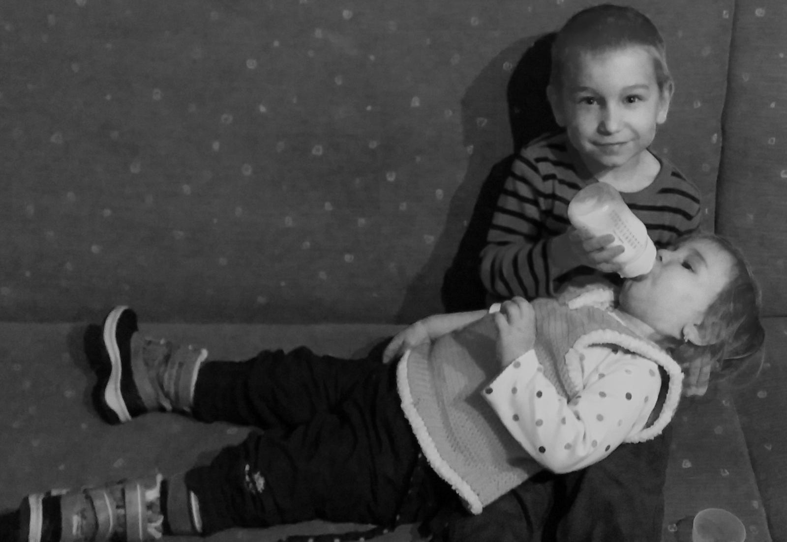 braček starší s radosťou ju pritom pozoruje. 🙂
