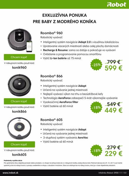 Nákup je potrebné zrealizovať cez nášho eshop.iRobot.sk a pri vybranej Roombe zadať zľavový kód uvedený v ponuke. Ponuka platí do 29.10.2017 👍