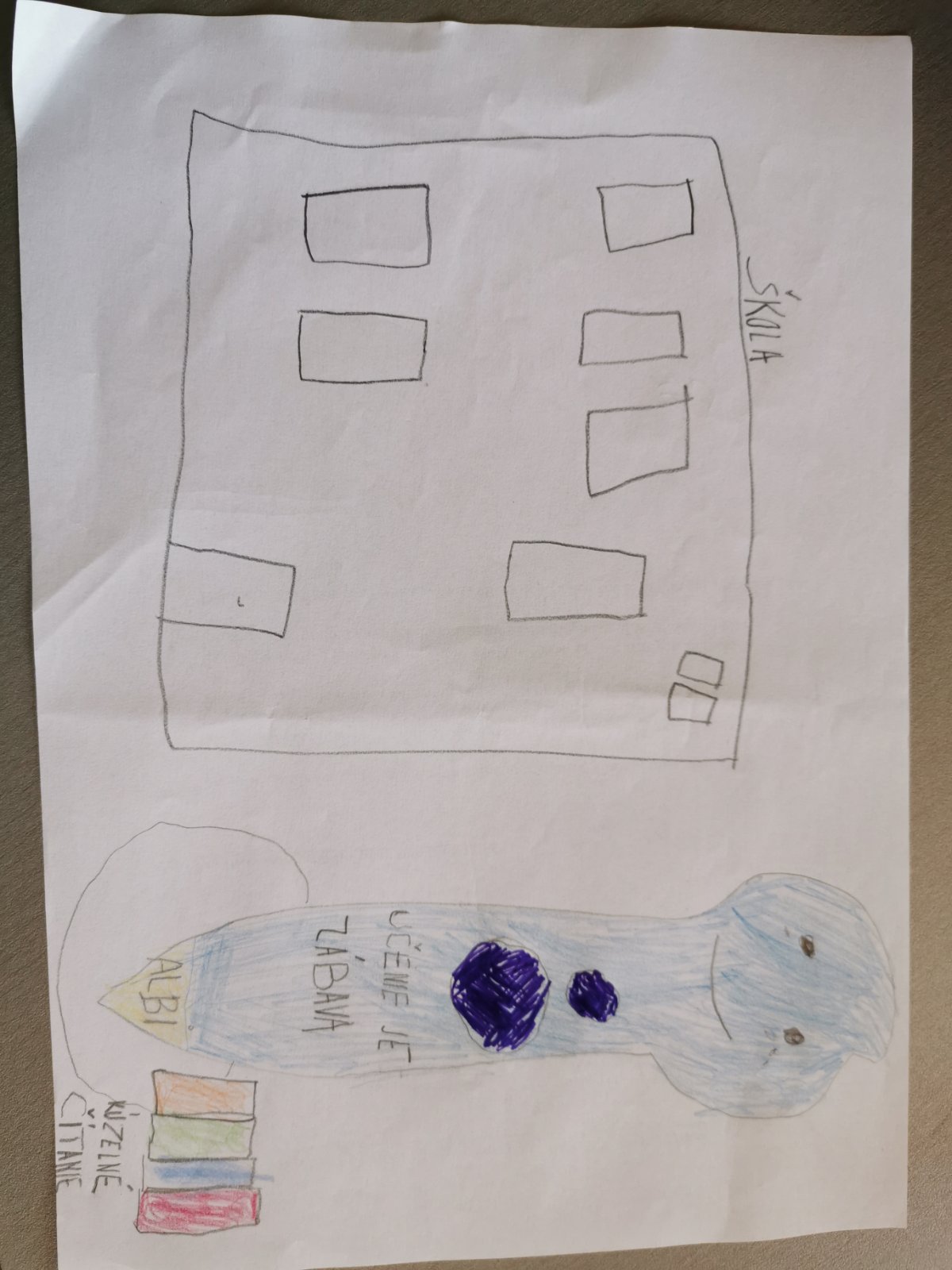 @nelakuzelnecitanie Môj štvorročný syn nakreslil fialovú ceruzku, ktorá číta modrú knižku, za ňou červenú ceruzku, a vraj všetci idú spolu na výlet. Obrázok kreslil úplne sám.