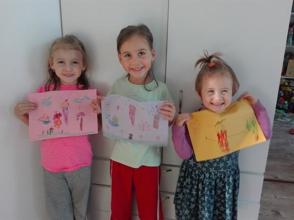 Aj nase dievcata (5, 4 a 2,5) sa s radostou pustili do kreslenia. My sice ceruzku Albi nemame, no citali nou u bratranca a boli nadsene. Tu su ich kresbicky: Ceruzky Albi na vylete v prirode 😊