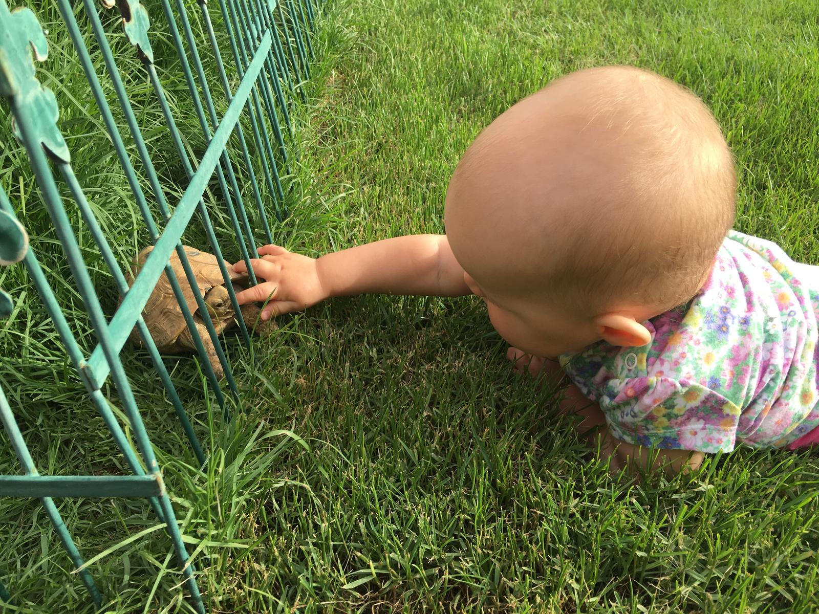 Nasa najmöadsia (14 mesiacov) miluje asi vsetky zvierata na svete. Aj tie korytnacky, co ju ako ca. 7 mesacnu pohryzli 😕 (no pchala prsty, kam nemala 😀 )