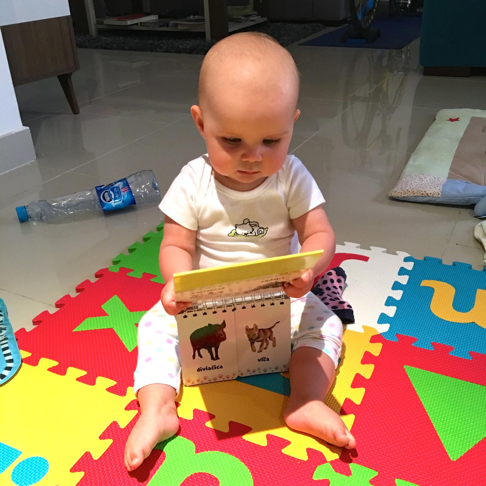 Mala ma zvieratka (a skrutky) zatial uplne najradsej, zo zvieratiek asi najviac psikov a konikov. Tieto dve zvieratka uz vie aj zvukovo napodobnit. Konik musi aj nejak lepsie chutit, lebo toho aj stale ozuzlava, ostatne zvieratka su celkom v zachovalom stave, ale konik uz vykazuje znamky domaceho tyrania.🙂 Zvieratka chodime pozerat aj do ZOO, mame rocnu vstupenku, tak chodime pozerat cca kazda 2 tyzdne co je nove, kto ma nove babatka, ako rastu, nakrmit kozicky, rybky, kacicky...