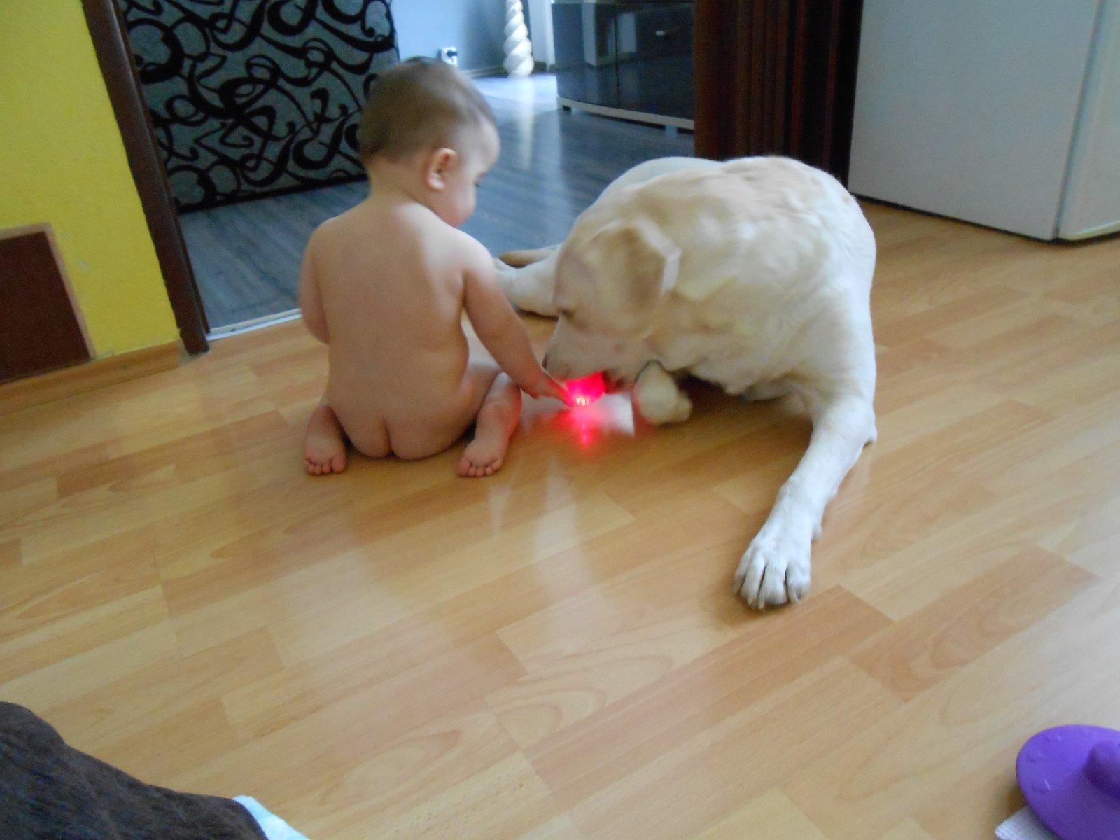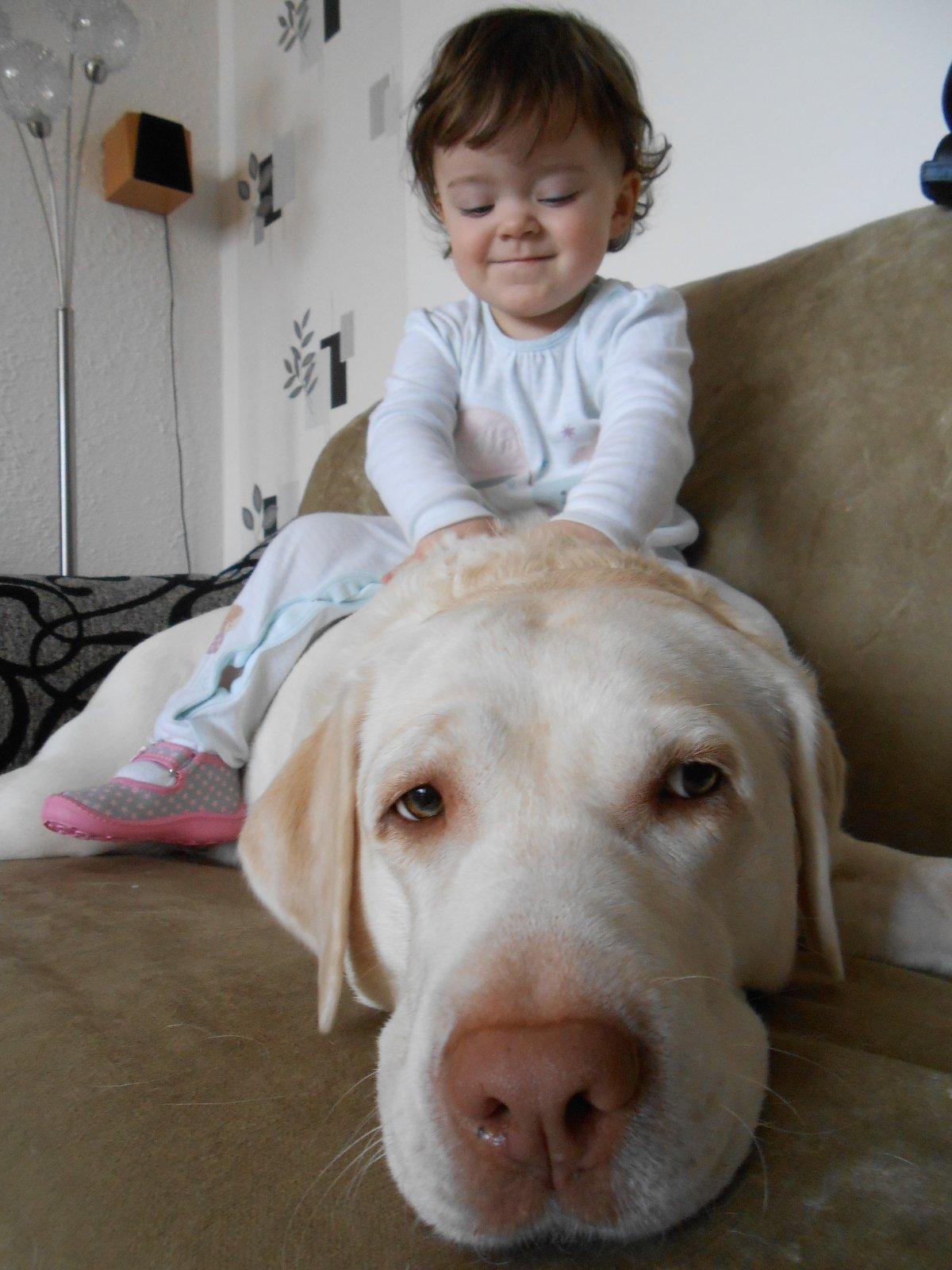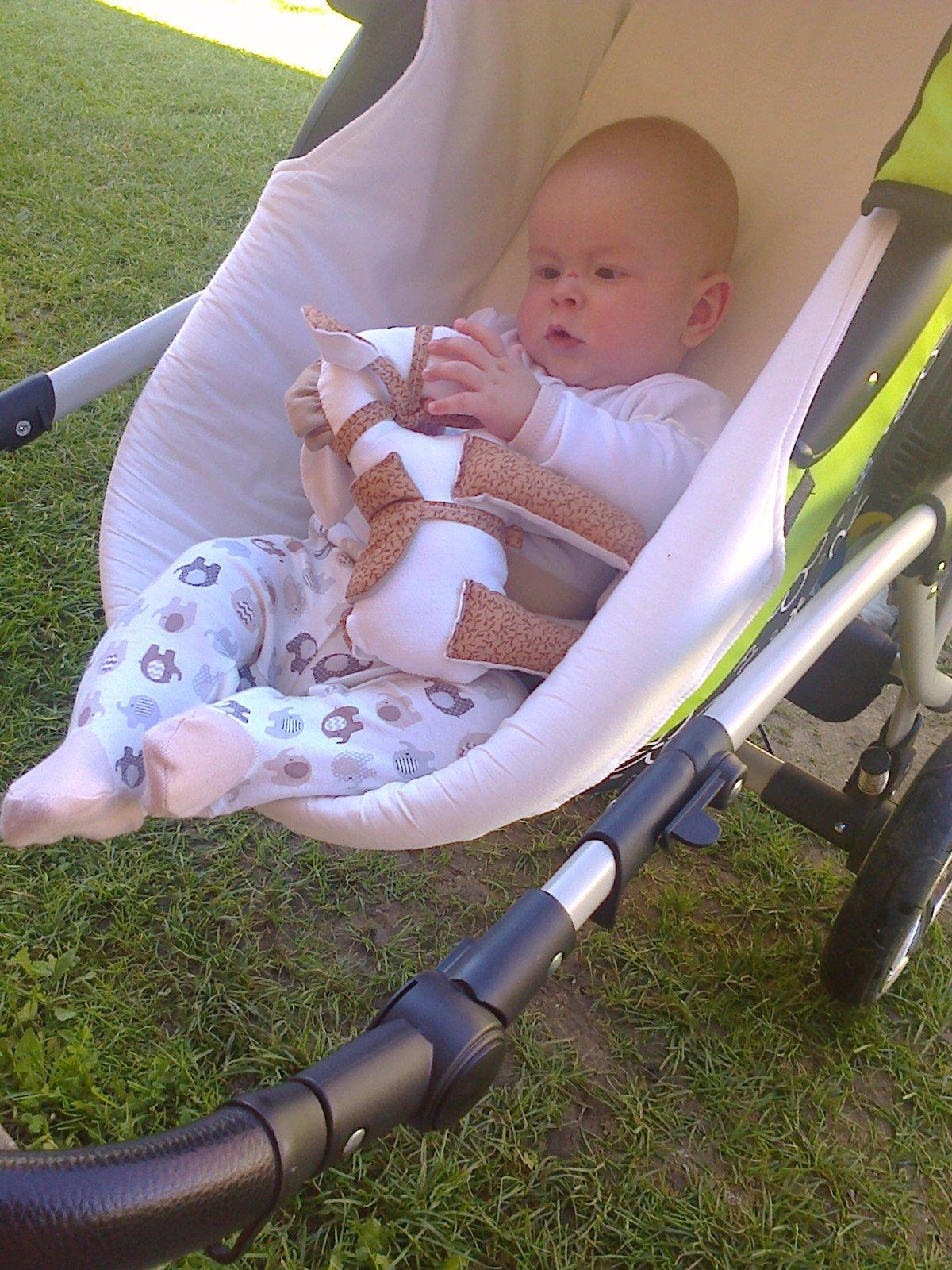 Máme troch psíkov, takže hrať sa s nimi je pre nášho staršieho synka bežnejšie ako s hráčkami 😀 má ich rád asi preto, že sa o nich dá všelijako opierat, rád sa k ním tuli, alebo len tak sadne ako do kresielka k tomu najväčšiemu a pozerá rozprávku.. Z hračiek má najradšej zirafku Z lega