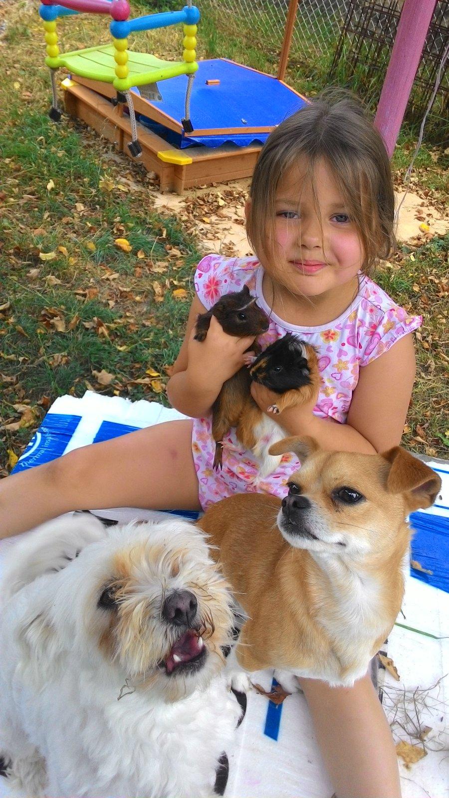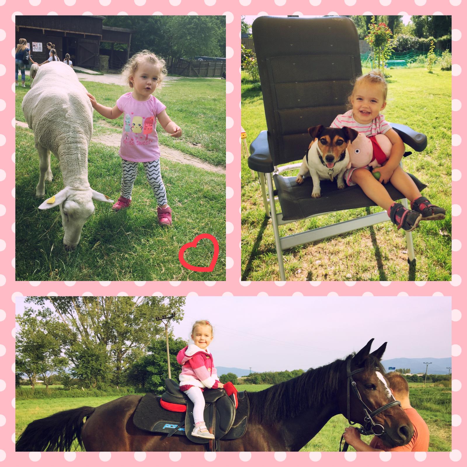 Je veľmi ťažké vybrať len jedno zvieratko, dcéra miluje úplne všetky či sú to lúčne koníky, hady či jašterice, psíkovia či mačičky, ovečky či kozičky, pravidelne chodíme kŕmiť rybičky a kačky k nám na rieku, doma máme zajačika, o ktorého sa príkladne stará. Ale úplne najviac miluje kone, sú jej veľkou láskou a keď vyrastie túži byť veterinárkou, aby sa mohla starať o choré zvieratká. Dúfam, že sa jej sen vyplní 😉