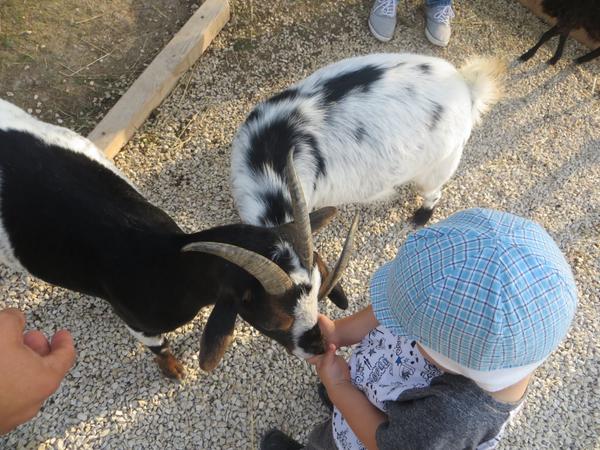U nas boduje velky biely cap na ktoreho chodievame pozerat na farmu. Cap je podla malej neposlusny lebo lezie na plot a nechce ostatne zvieratka pustit k jedlu 😊