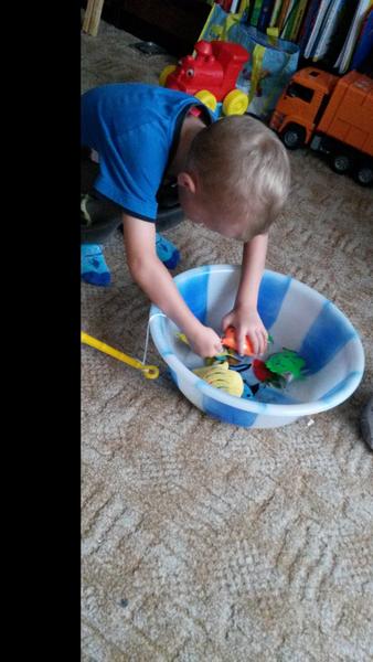 Na dlhú dobu vyhrávajú rybky. Vôbec netuším prečo, ale drobec je nimi fascinovany.