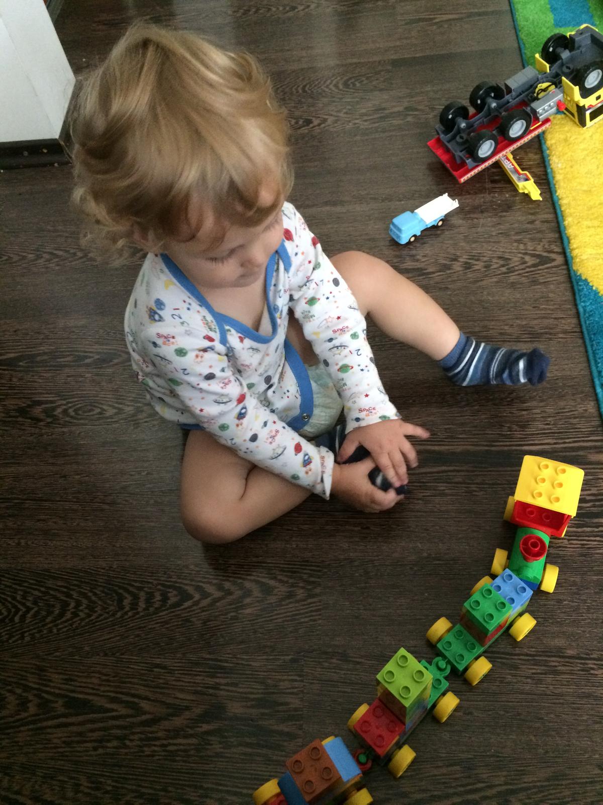 Nas maly ma prave vlacikovu maniu, ma dve malicke drevene lokomotivy a s tymi sa hra a ukazuje nam ako robi vlacik "si si siiiiii". Takze vlacik je top a ked som ho v lete zobrala na vylet vlacik, bol cely bez seba (mal 14m), takmer ani nedychal. A ked uz cesta zacala byt dlha a zacal sa nudit, stacilo mu pripomenut, ze sme vo vlaciu a zase spozornel a obzela sa vsade okolo seba a vsetko pozoroval. Najviac bol vo vytrzeni, ked sa mu z okna podaril vidiet aj bager. To je najlepsia kombinacia, vlacik a bager :D