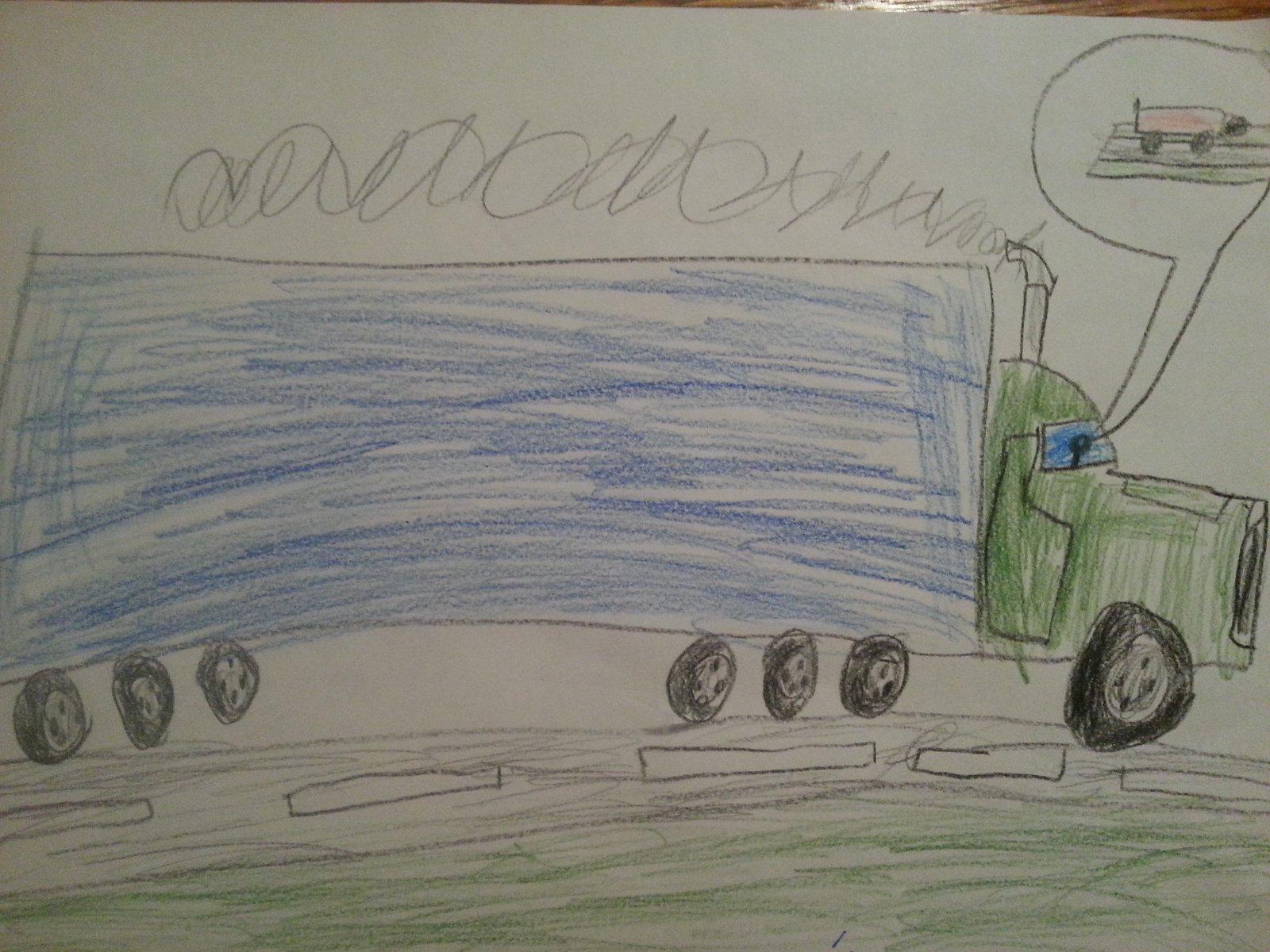 u nás vezie nákladiak drevo a to ešte aj na prednej kapote a pomedzito aby nebolo málo tak zemiaky 🙂 Drevo je vraj pre starkého a keďže prší nákladiak potrebuje aj dáždnik, kreslili sme s dcérkou spolu aj ked ona viac rozkazovala čo mám kresliť 🙂 ale drevo ,zemiaky ,slniečko a domčeky pre nákladiak kreslila ona