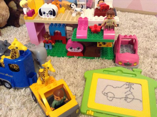 Tak aj my sme dnes tvorili. Daminko sa sice len 15 mesiacov, ale maminka pomahala viest rucicku s pastelkou ako sa dalo 😀 dookola opakujeme 3 slova - haooo (havo),ciiiiic(cica) a dudu takze nam by nakladiacik priniesol psickov,macicky a cumliky 🙂 ziadne lego este nemame, ale drobec zboznuje kolesaaaa,na kazdom aute musime pochytat 😀 radost by bola obrovska