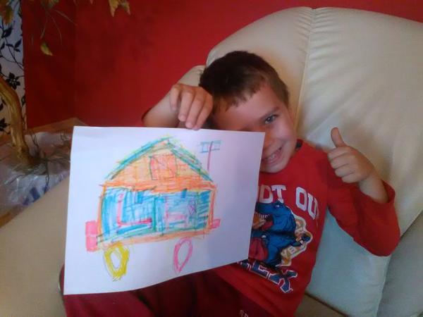 Nas nákladiak s ujom šoférom by odviezol slniečko a celu našu rodinku na výlet. Pri kreslení pomáhala aj mama 🙂. Hra na obchod a skladanie stavebníc patria u nas medzi najobľúbenejšie hry 🙂).