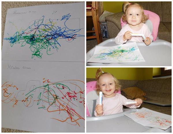 My už krásne kreslime😃hlavne seba so všetkým čo je jedlé😂podlahy😱ale každopádne najlepšie to ide prstami👐