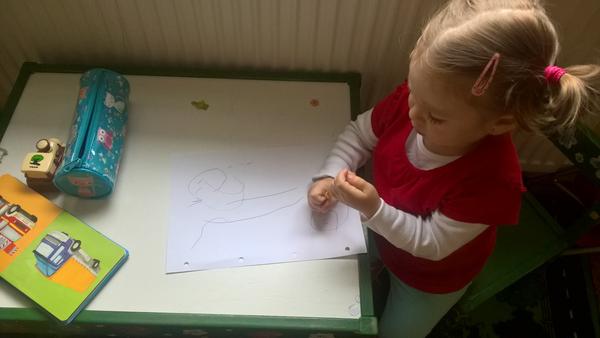 Dobry den, pridavame sa aj my. dcerka ma o mesiac dva roky a lego ma velmi rada, tak sme skusili nakreslit nakladiak. ak by to niekto nevedel rozlustit, tak napoviem, ze je to nakladiak, ktory vezie zirafu 😉 . ale kolesa sa jej celkom podarili 🙂