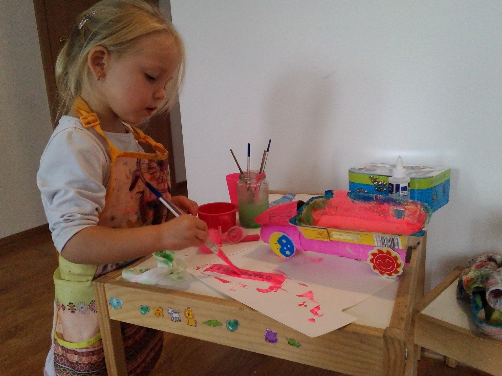 Z Terezkou (3r) sme vytvorili taketo nakladne auto ktore vozi celu rodinu 🙂 , Martinko (6 mes.) nase kreativne okienko uspesne prespal.
