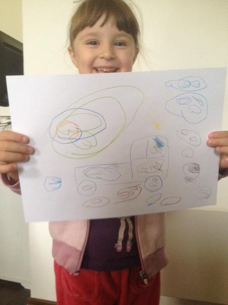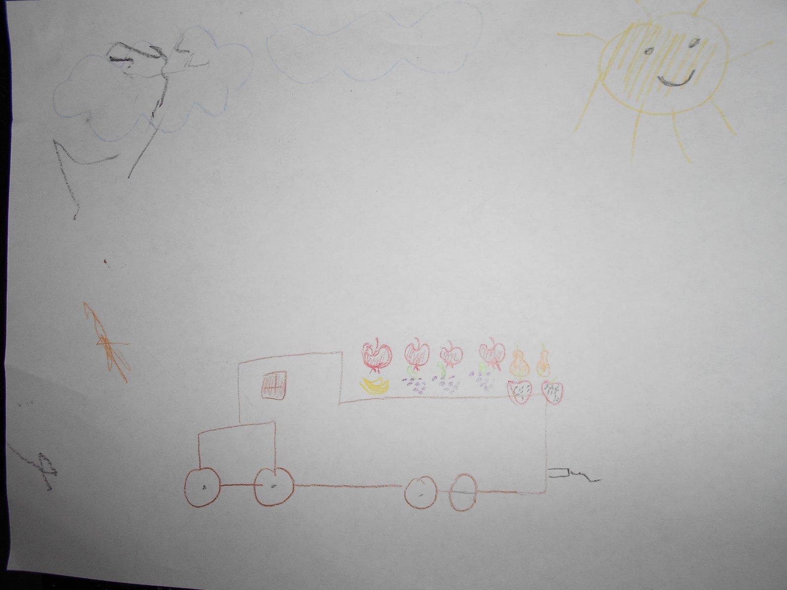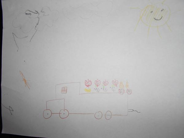 Naša dcérka má ešte len 10 mesiacov, tak nakresliť ešte nevie, ale určite by viezol nákladiak momentálne bábiku, čomu už veľmi dobre rozumie - auto a bábu veľmi dobre pozná 😉 🙂