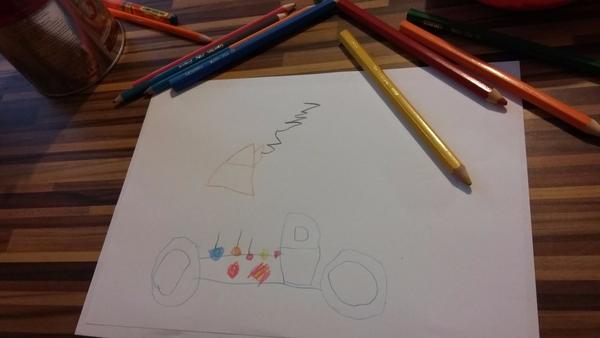 Moj Filipko ma 2r.10 mes. Ako kazdy chlapec miluje auta.Maminka nakreslila nakladak a Filipko dokreslit jabcka a travu 🙂
