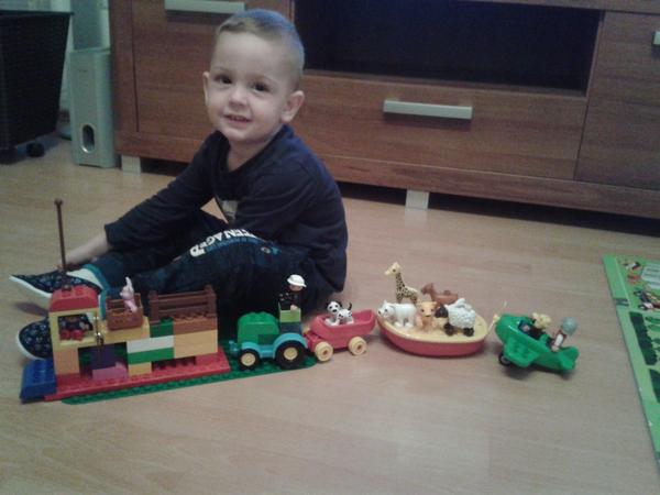 Jakubko lego, či už obycajne alebo duplo miluje, preto dnes namaľoval kamión, ktorý vezie traktor, kamene a drevo😂