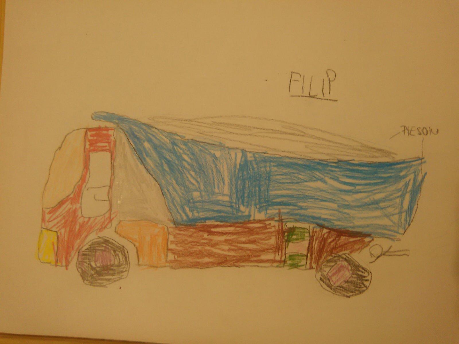 Filipko nakreslil nakladiak vezúci piesok. V nasom blizkom okoli taketo nakladiaky vidi pravidelne tak v poslednom case kreslime len auta. Lego je u nas najoblubenejsia hracka. A nielen pre Filipka. ;) Filipko 5 rockov ;)