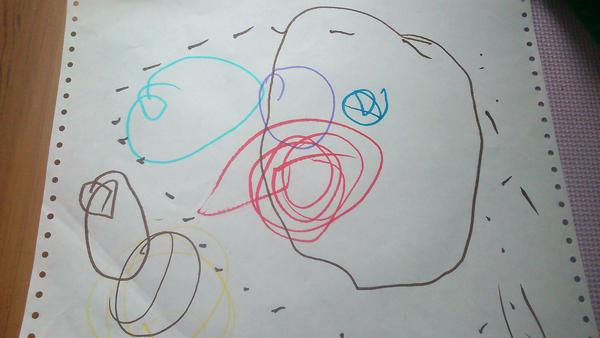 kedze nas maly este nema ani 2roky tak jeho kresba je aka je 😀 snaha bola... nas nakladik vezie prosim pekne kamene a ujo soferuje 😀 ... to je jeho ked kresli pekne si to aj komentuje oci, nos, usta...ujo brm brm 🙂