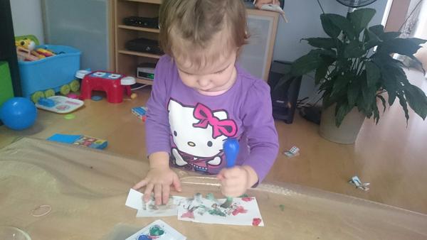 Dcerka mala v pondelok 2 roky, kedze nakladak by nakreslit nevedela, tak som jej ho vystrihla a ona sama ho pomalovala.