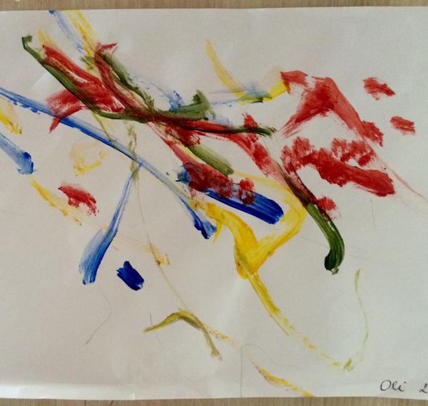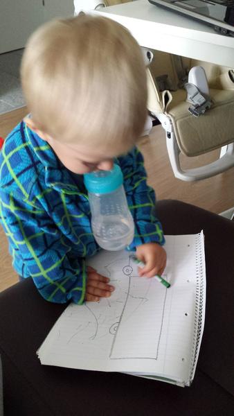 Môj 15 mesačný synček prvýkrát s pastelkami v ruke, nakreslila som mu kamión aby tam niečo dotvoril a vyzerá to takto. 😃snaha bola...cajik pri tom musi byt