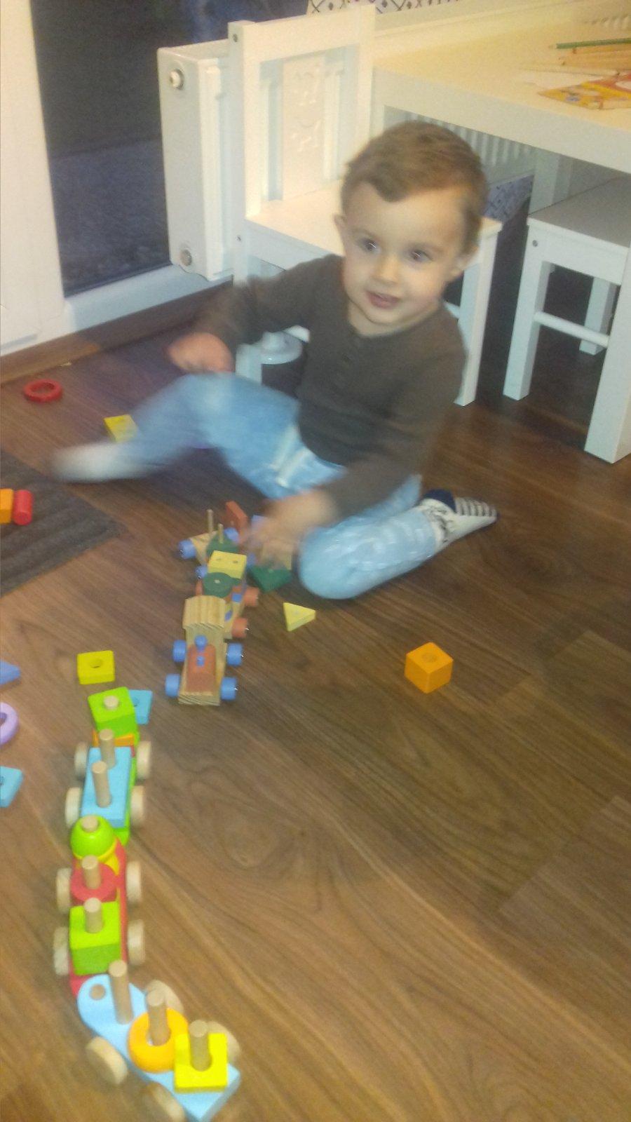 Prvy krat sme s malym isli vlakom z BA do naseho rodneho Presova, ked mal nas Filipko 10 mesiacov. Teda isla som s nim sama, tatinko nas nalozil a bolo. Dieta v nosici, velky kufor, kabelka a kocik ☺. Od vtedy obcas od nas regiojetom do mesta, uz ako si maly viac uvedomuje tak si cestu vlacikom aj dost uziva, fascinovane sleduje krajinu za oknom (to ma po mne). Posledna nasa cesta vlacikom bola v oravskej lesnej po starej rozpravkovej zeleznicke, v otvorenom starom vagone. Slniecko svietilo, prenadherna krajina, este aj trava bola akasi zelensia ako v meste, popri trati rozne rozpravkove postavicky, este aj Jezibaba na metle visela zo stromu, aj my dospely sme mali zazitok. Nas Filipko sa od vtedy velmi rad hra s tymito drevenymi navliekacimi vlacikmi, (v jeho reci ačík alebo šušušu 😀 ). Na legovy zatial z materskej nevyslo 😢