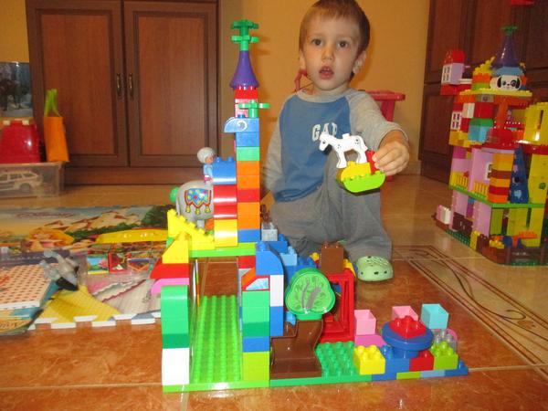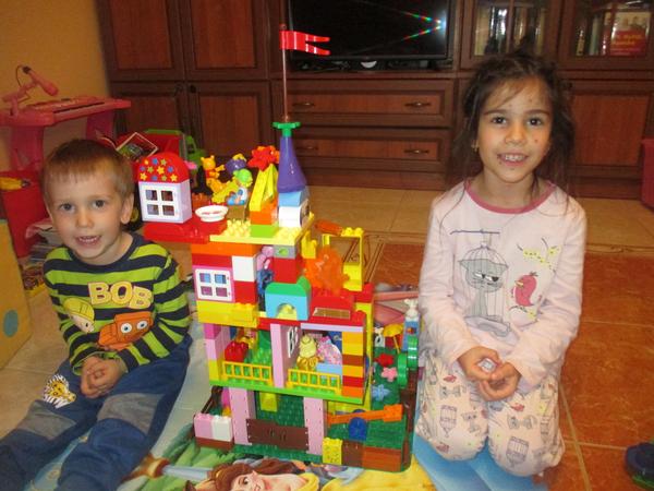 Dobrý deň, moji traja chlapci sa s veľkou chuťou pustili do stavby "najlepšieho" domčeka, nakoniec vymysleli Hotel u bieleho koňa, každá hotelová izba má svoju farbu a pred hotelom je záhradka s kvetmi a minizoo, aby sa tam každý cítil ako doma. Počas stavby začal hotel horieť, museli sme volať hasičov,tesne okolo hotelového balkóna preletelo lietadlo... veľa zábavy sme spolu si užili. 😉