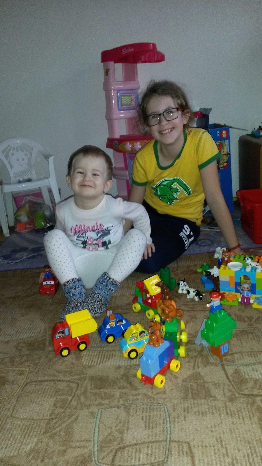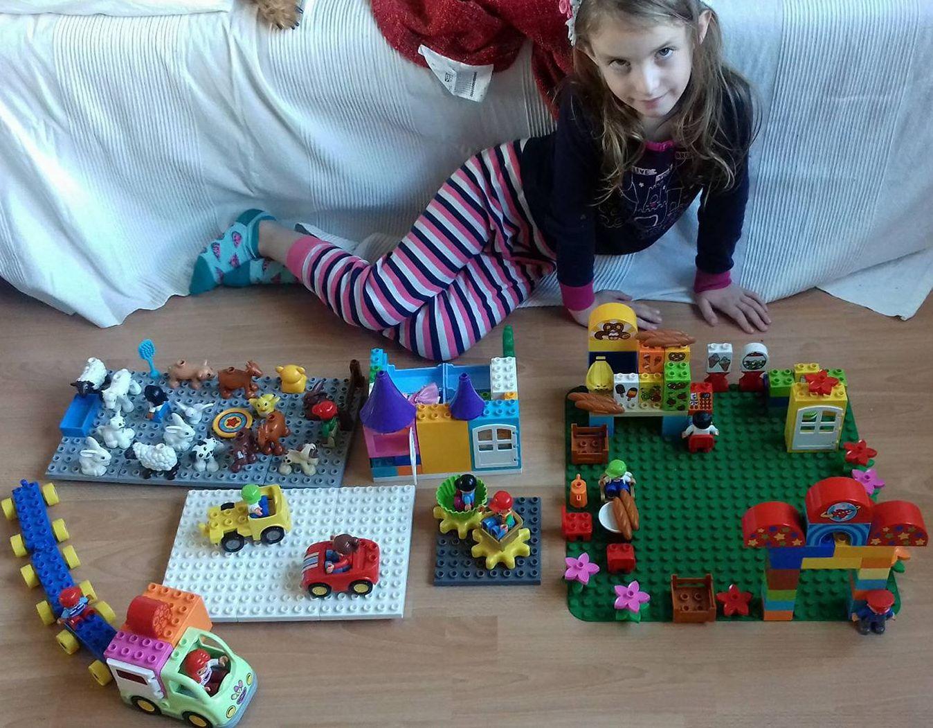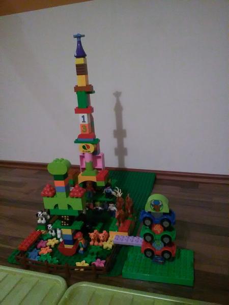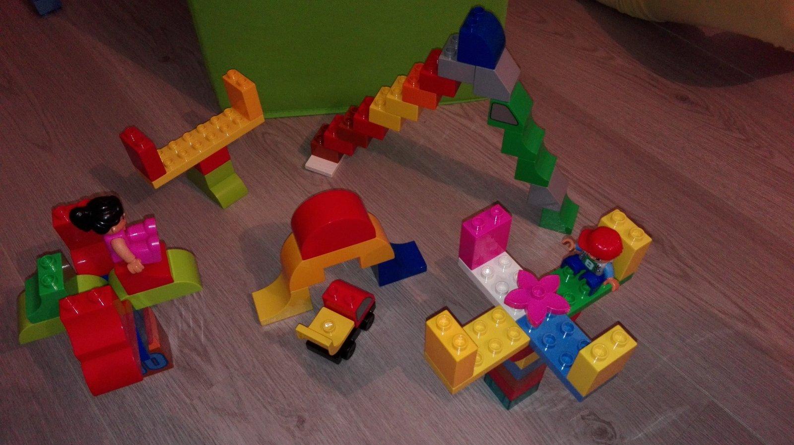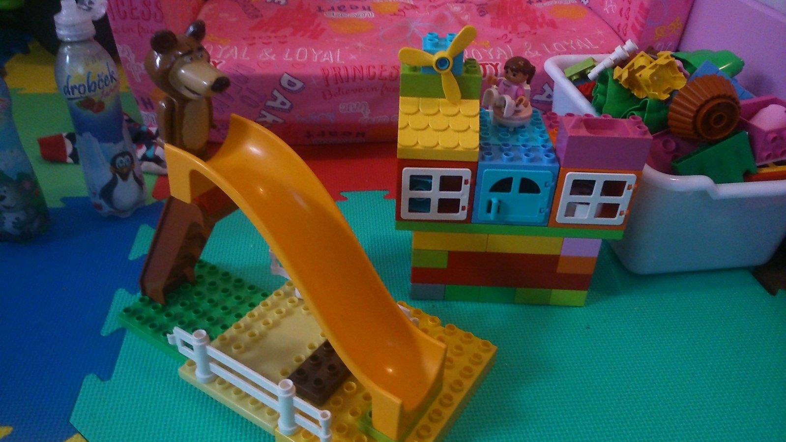 Moja starsia dcera sniva o Lego lunaparku pre seba pod strocek. Ked pocula, ze pre malu sestricku moze vyhrat Lego Duplo lunapark, tak sa hned dala do stavania. Krpata jej casto brala kocky a "kazila" jej to po svojom, ale napokon boli obe s vysledkom spolocne. Stavim sa, ze zajtra ked rozlepi oci, tak jej prva otazka bude, ci som fotku poslala, lebo posledna veta, ked isla spat bola, aby som nezabudla fotku poslat.