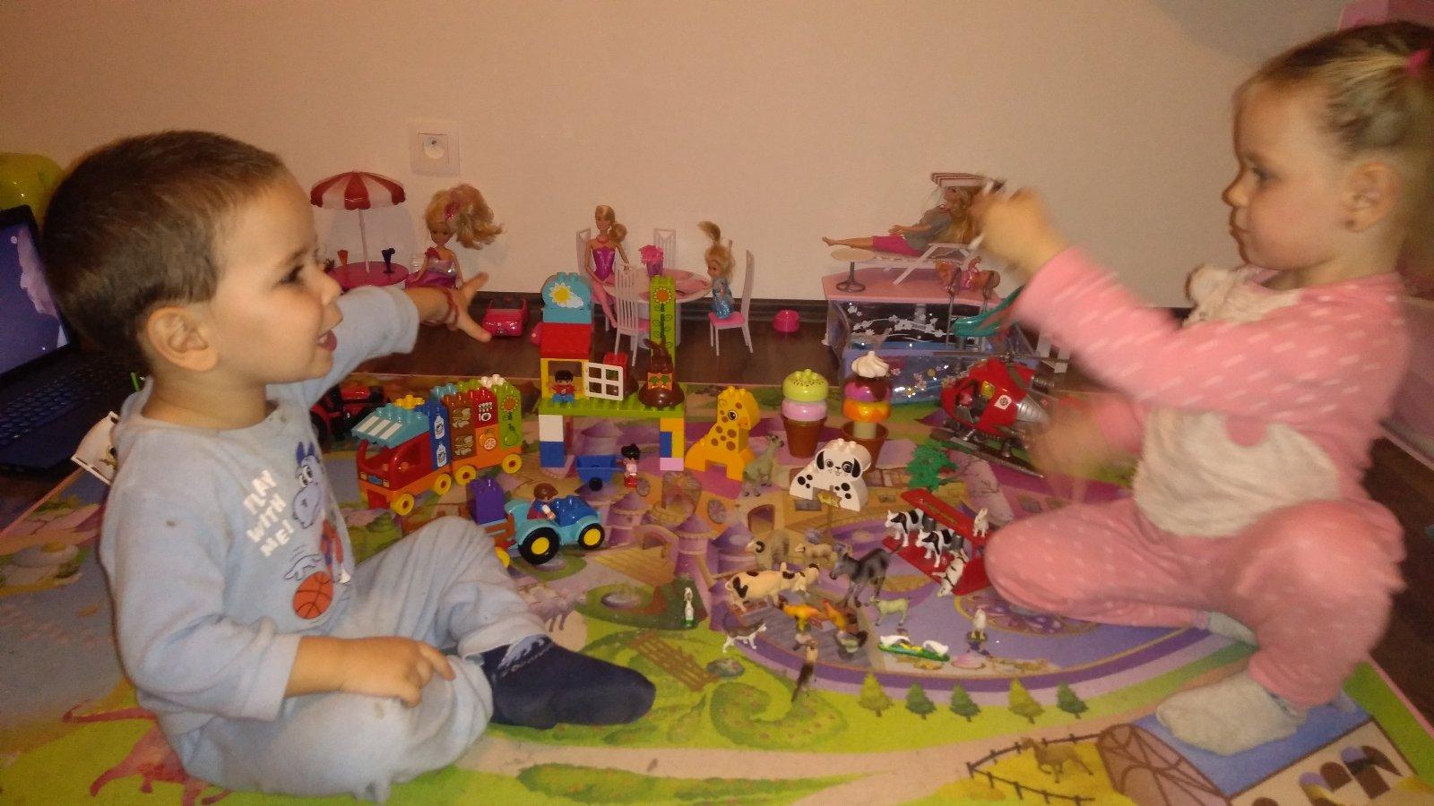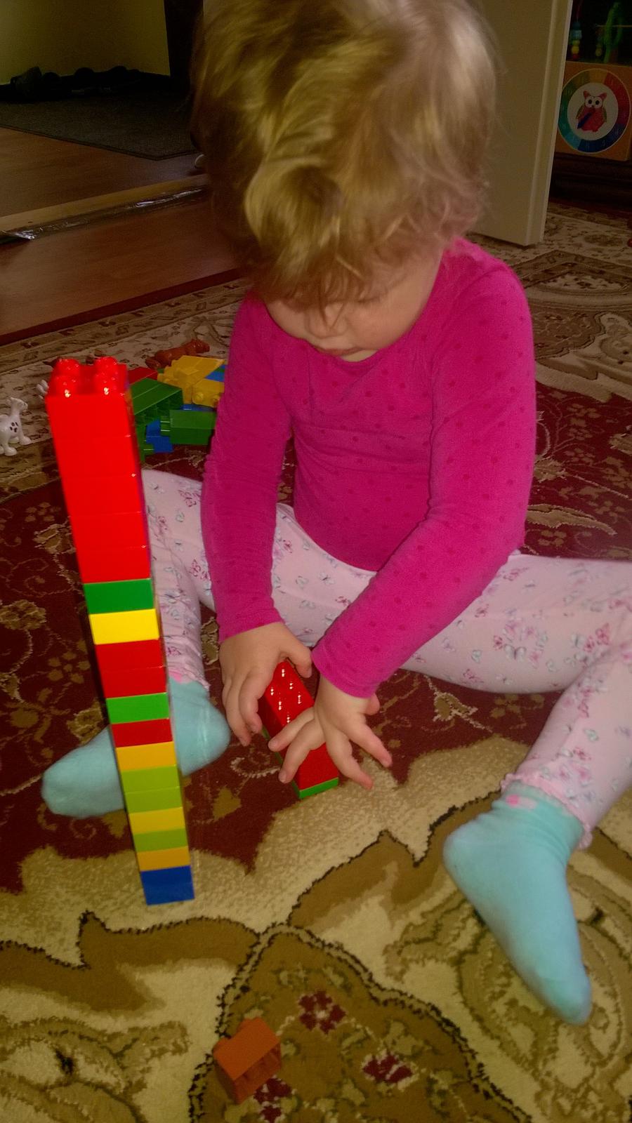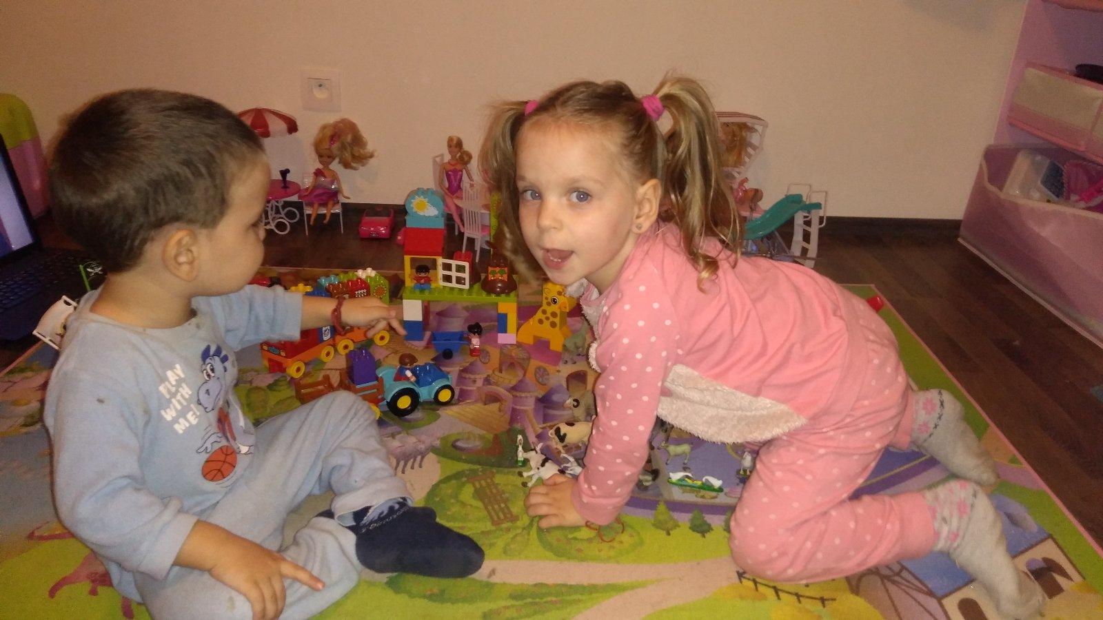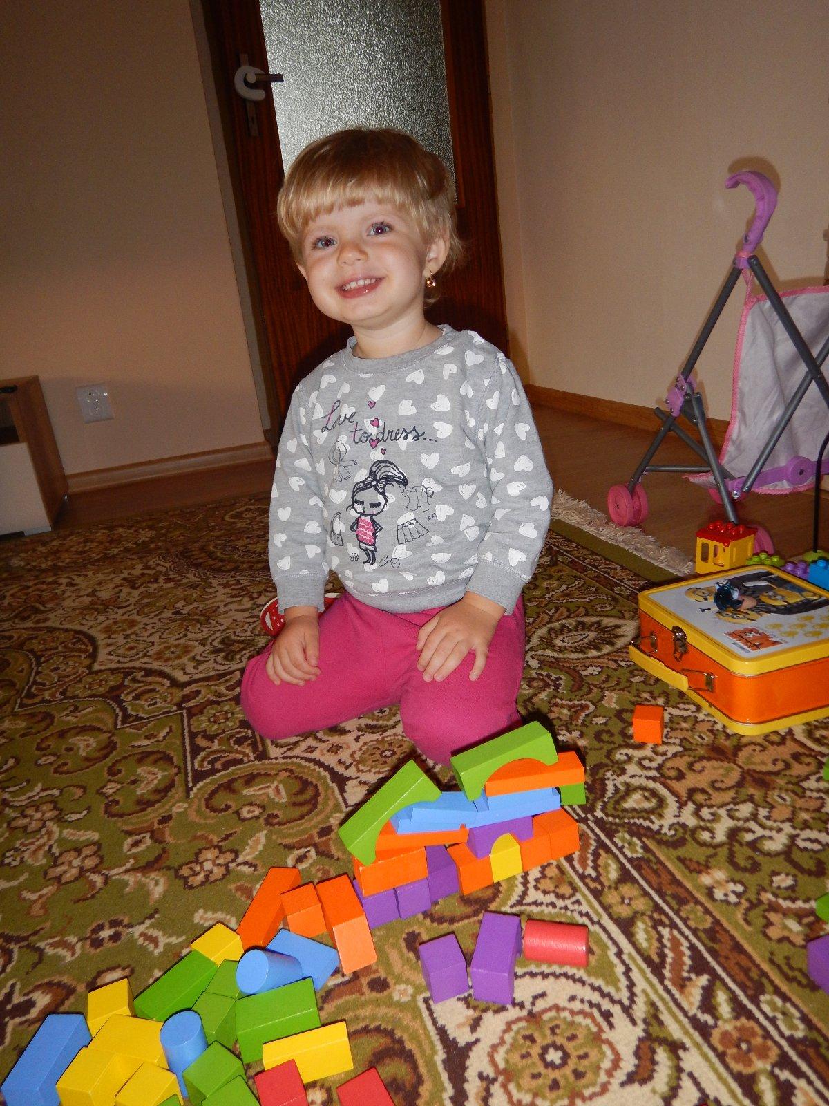 Moja starsia dcera sniva o Lego lunaparku pre seba pod strocek. Ked pocula, ze pre malu sestricku moze vyhrat Lego Duplo lunapark, tak sa hned dala do stavania. Krpata jej casto brala kocky a "kazila" jej to po svojom, ale napokon boli obe s vysledkom spolocne. Stavim sa, ze zajtra ked rozlepi oci, tak jej prva otazka bude, ci som fotku poslala, lebo posledna veta, ked isla spat bola, aby som nezabudla fotku poslat.