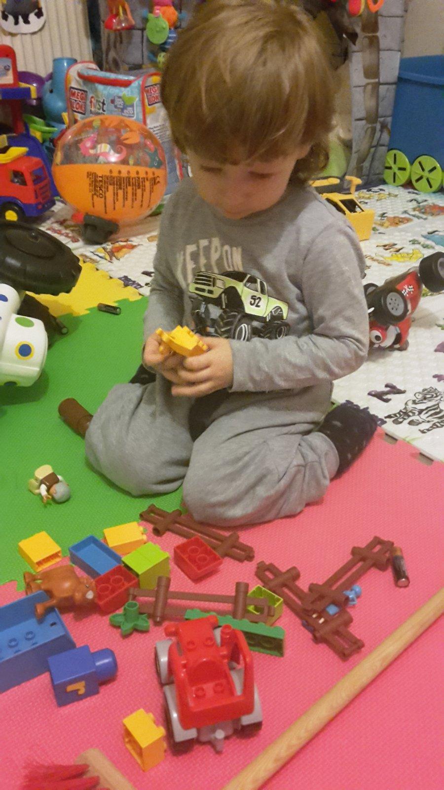 Aj naši malí nezbedníci tvorili lego lunapark 😍 Synček (3,5 r.) postavil všetky stavby - sú tam kolotoče, trampolína a najvyššia stavba, to je fontána, tá nesmie chýbať, nakoľko ho fontány fascinujú 🙂 Dcérka (10 m.) mala na starosti návštevníkov a zvieratká - ako vidno aj na foto, ochutnala ich všetkých 😂