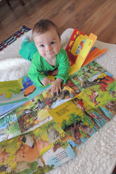 Náš synček má rád už od malička rôzne knihy, prostredníctvom ktorých objavuje svet okolo seba. Na všetky predmety, obrázky, zvieratká... čo sú v knižkách sa pýta otázkou "HM?" (má ešte len rok a pol). Ja musím vždy obrázky pomenovať a potom je spokojný 🙂 Cez víkend sme s manželom pílili drevo na zimu, pričom synček nás celý čas pozoroval. Večer sme ho ukladali. Na druhý deň prišiel za mnou synček s knižkou so zvieratkami, kde bolo na kope uložené drevo a ukazoval mi, ako sme to včera uložili 🙂