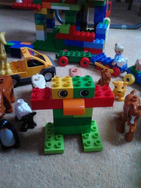 s LEGO Duplo sa rady hráme tak veľký ako aj malý, staviame zámky a hrady, ale aj vysoké veže ako minulé letné prázdniny u babky na východe, a keďže býva na opačnom konci republiky ako my aj tam máme LEGO DUPLO na hranie a postavili dcérky vežu väčšiu ako ony a babka, bola super zábava a samé si občas aj vytvárajú zvieratká z lego- napr. tučiaka, žabu, podľa seba a svojich predstáv, LEGO DUPLO je super všestranná hračka učí nás rodičov aj detičky.smiech