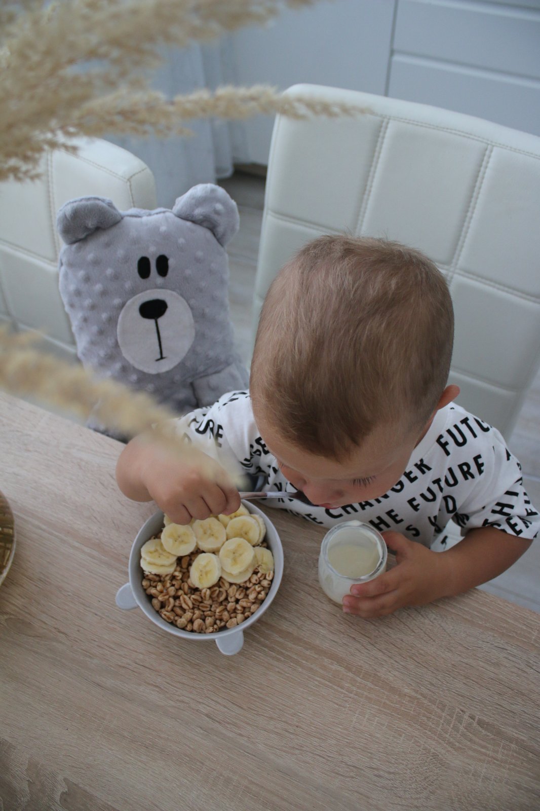 Dobre ránko 🙂. Niekedy som dávala kúsky čerstvého ovocia(banán, maliny...) no uz som lenivá a iba vyberiem z chladničky hotový ovocný, zamiešame a je to 🤪