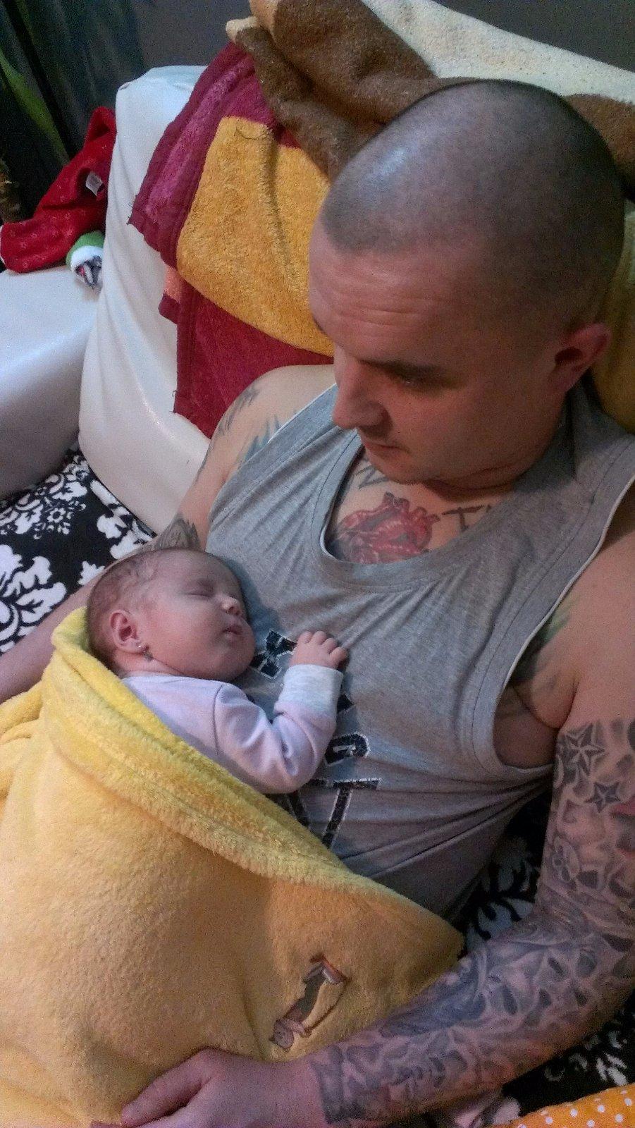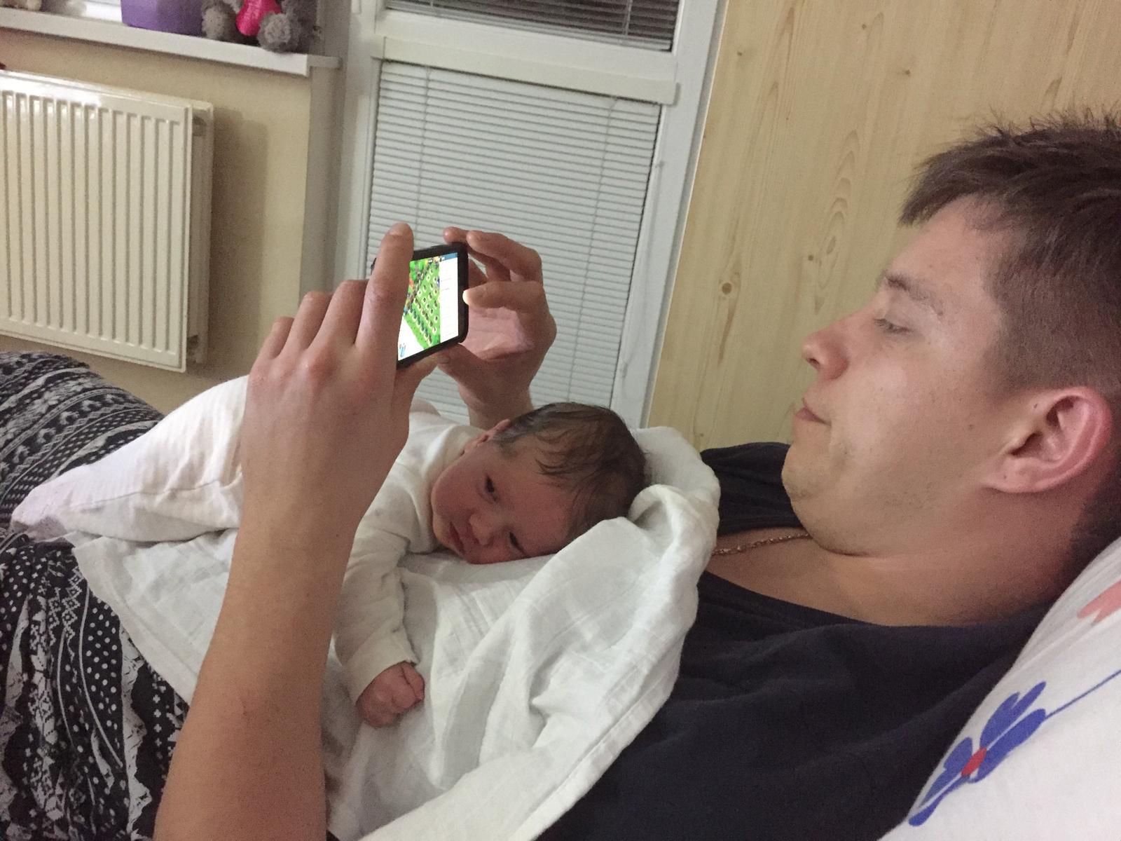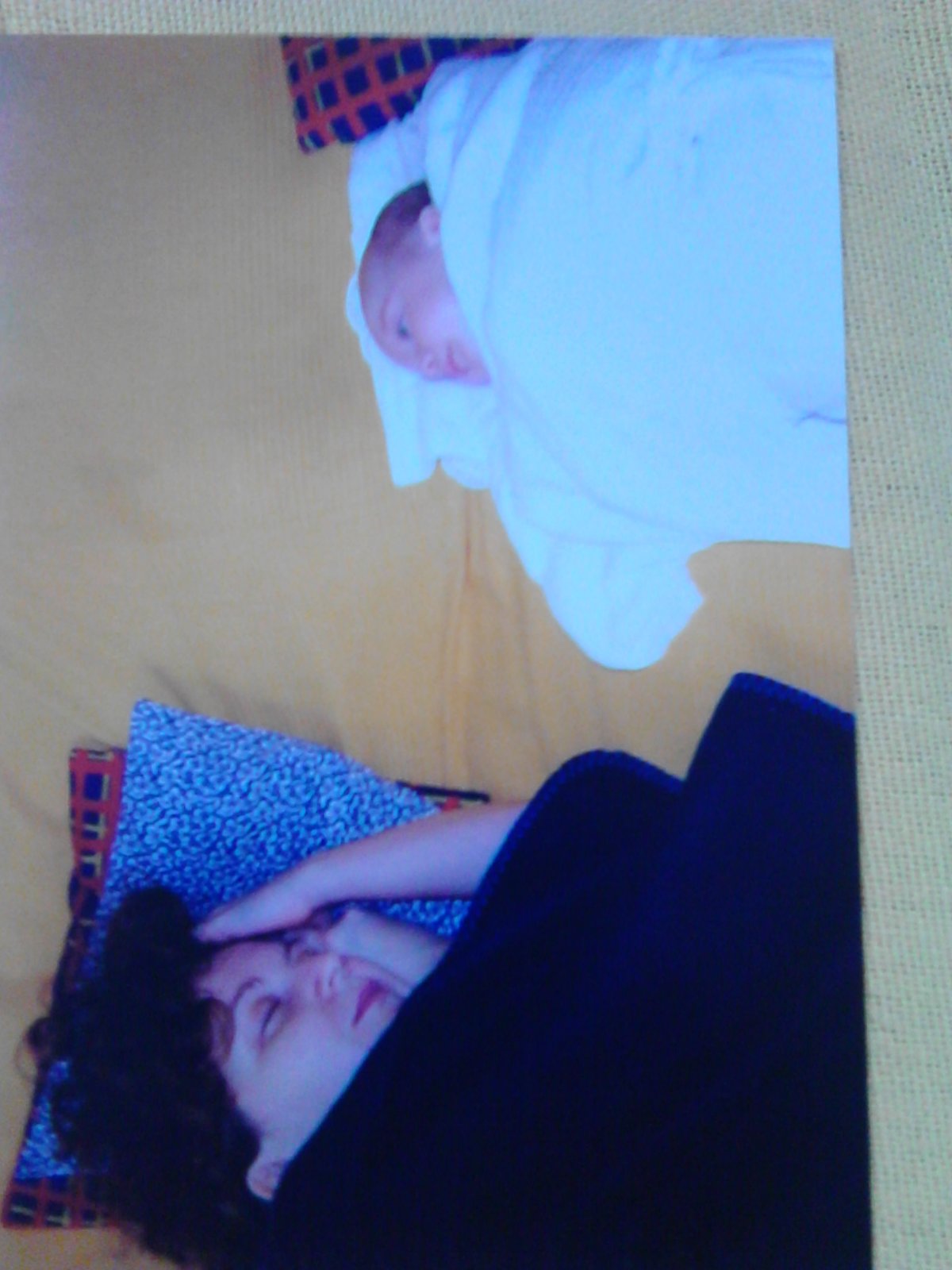 /prepáčte za menej kvalitné foto a otočeni, ale najstaršia sa snažila nezobudiť ma, potom mi to vysvetľovala a tú fotku mám rada, je moja naj z lásky./