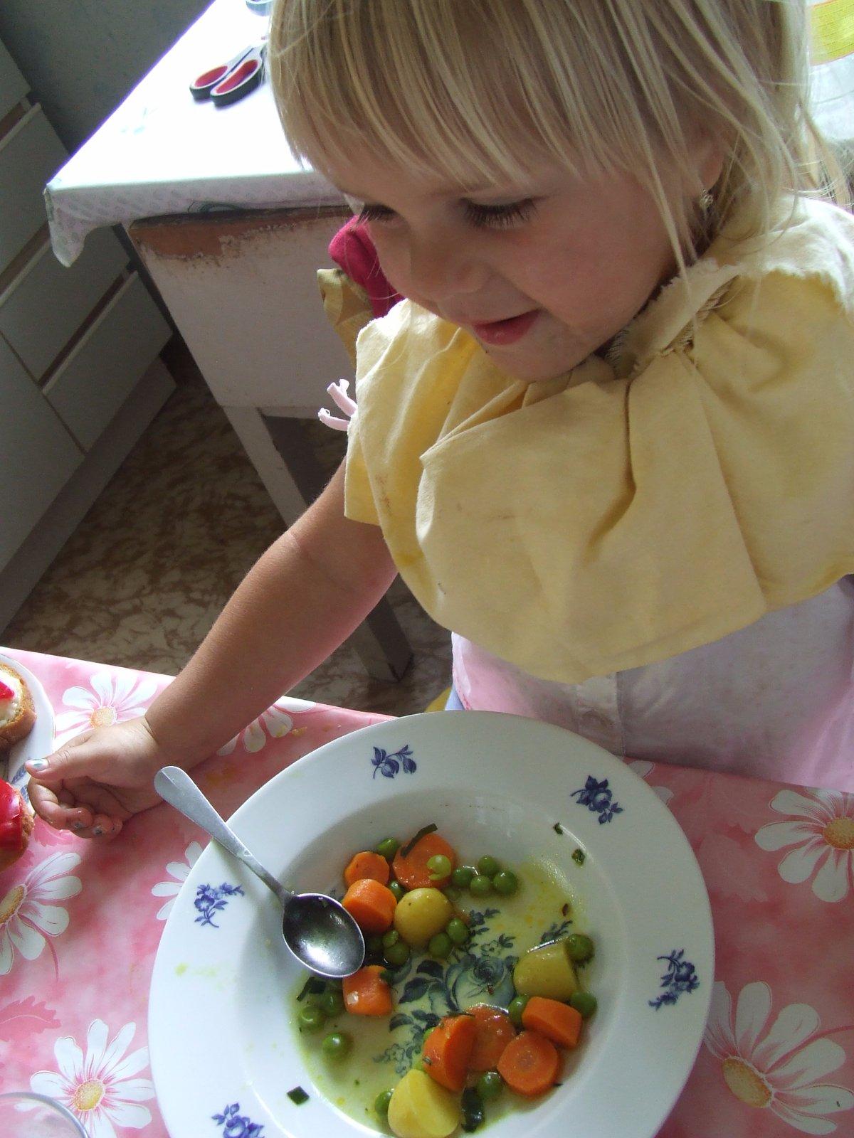 V lete máme radi na raňajky aj čerstvú dusenú zeleninku - hrášok, mrkva, mladé zemiačky s troškou oleja alebo masti, niekedy totiž zostane niečo z večere. Popritom aj chlebík so syrom a čerstvou paprikou ako vidieť na okraji našej fotky. Závisí to aj podľa toho koľko času je na raňajky a komu sa podarí vstať skôr a komu sa vôbec vstávať nechce. Nápoje mám radi asi všetky tradičné raňajkové: v zime skôr teplejšie ako čaj a káva, v lete často aj čistú vodu, deti rady sladšiu so sirupom.
