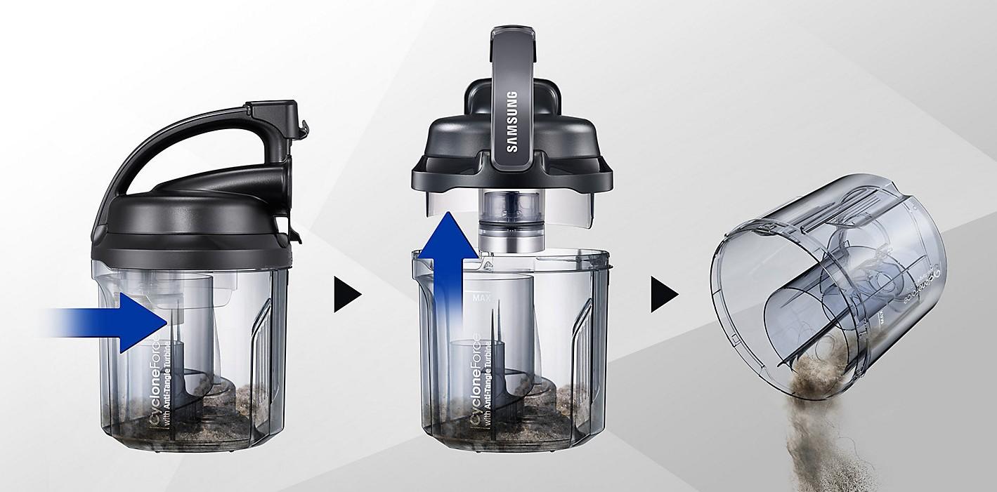 @88patka88 Velmi podstatne na vysavacoch su samotne hubice. Vela vyrobcov tam velmi setri davaju obycajne. Hubica by mala byt idealna 3 klbova, aby udrzovala s povrchom staly priklad a nasledne vyuzila saci vykon vysavaca. Pre vas ako vela vysavate a mate doma zvieratka tak by som isiel variantou bezvreckoveho vysavaca. samsung momentalne pouziva najjednoduchsiu a najucinnejsiu separaciu necistout v zbernej nadobe. Zaroven vysavac vycistite bez komplikovaneho cistenia. Vsetky nove Samsung bezvreckove vysavace pouzivaju tuto pokrokovu technologiu Cyclone Force Anti-Tangle Turbine v jednoduchosti turbinku 🙂 Cistenie ako vidite na obrazku aj v realite. Staci otvorit a vysypat.