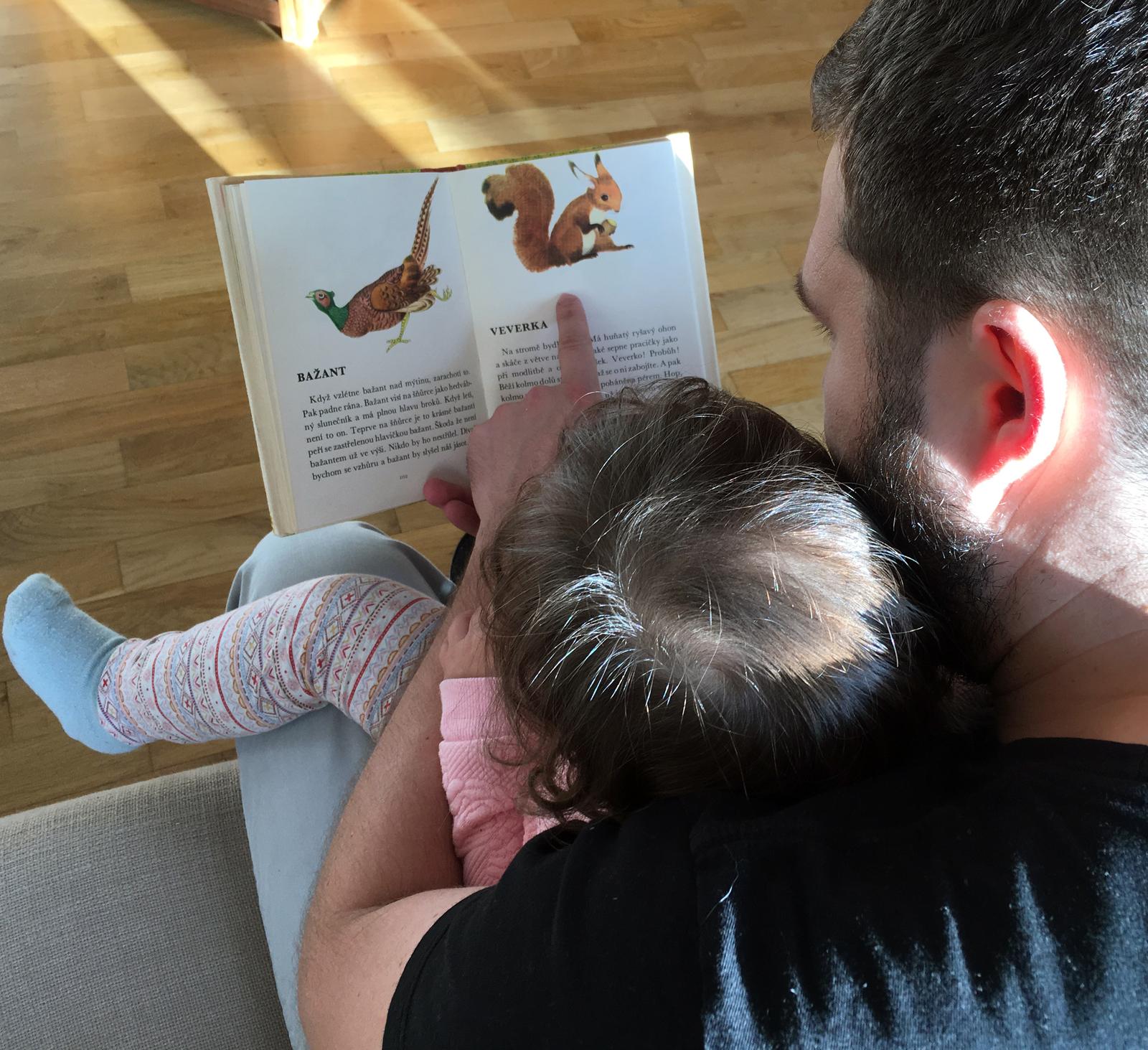 Ešte nás čaká minimálne 20 rôznych kníh. Počas dňa si pozerá zvieratká v tvrdých knižkách a niekedy natrafí aj na moje a v tých len listuje a listuje, ale žiadne obrázky. Asi ju baví len listovať 😀