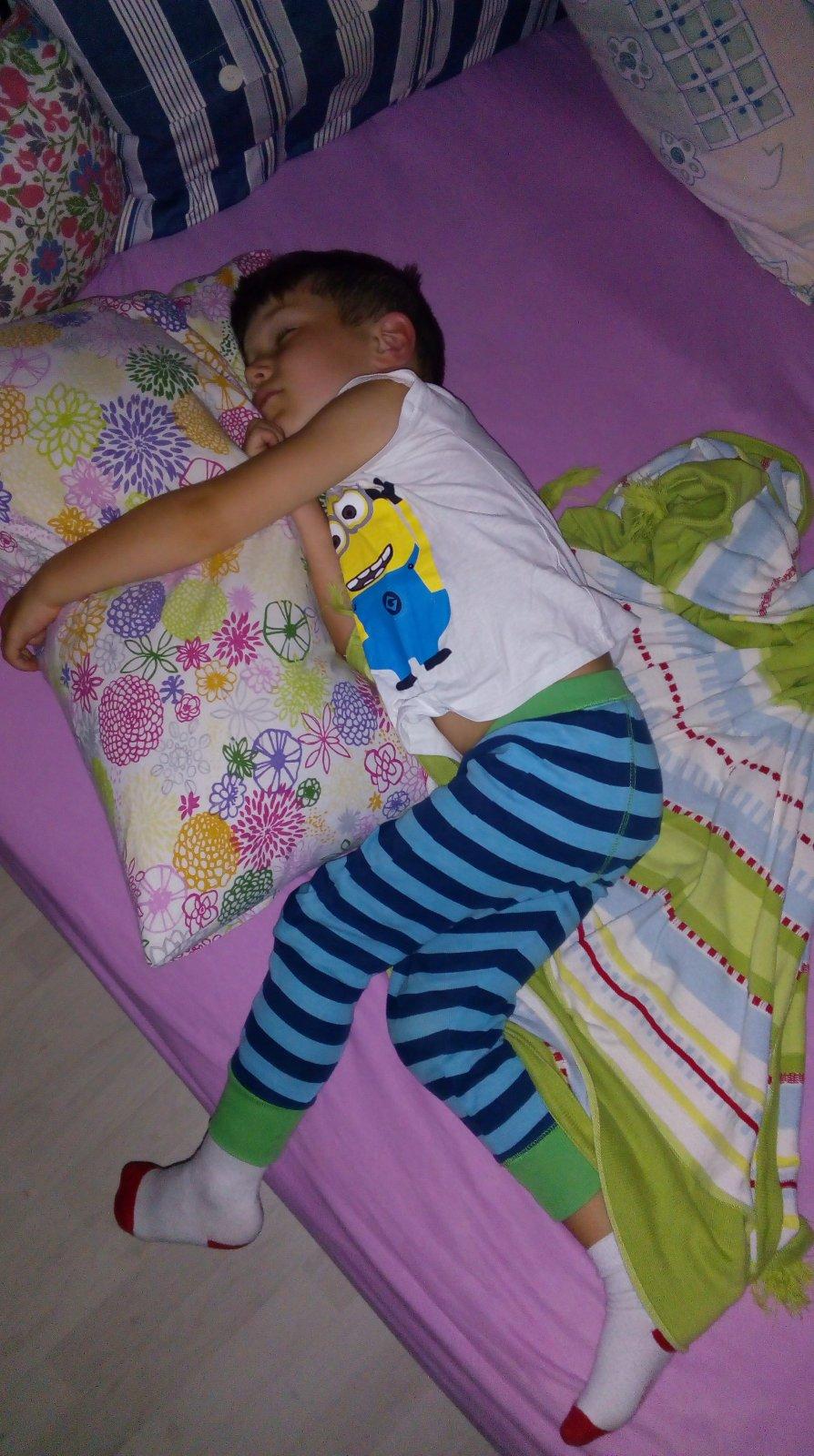 @radka_pribinacek takto spával keď bol malý...teraz skôr na chrbte a vyložené nohy na stenu....pridávala som viac fotiek, ale akosi neprešli...ešte skúsim pridať novšie 🙂