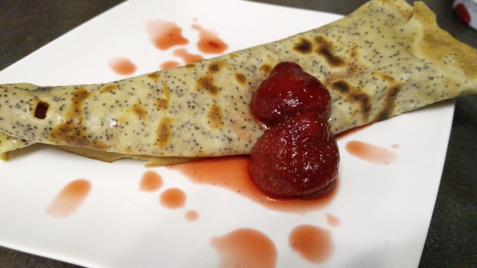 no prikladám aspoň foto z našej včerajčej večere: palacinky s makom a jahodami