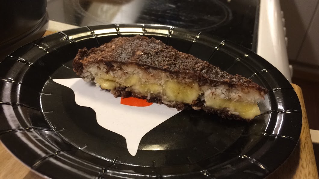 Plnka: 3 šálky strúhaný kokos, 1/4 šálky kokosový olej rozpustený, 1/4 šálky med, 3 banány