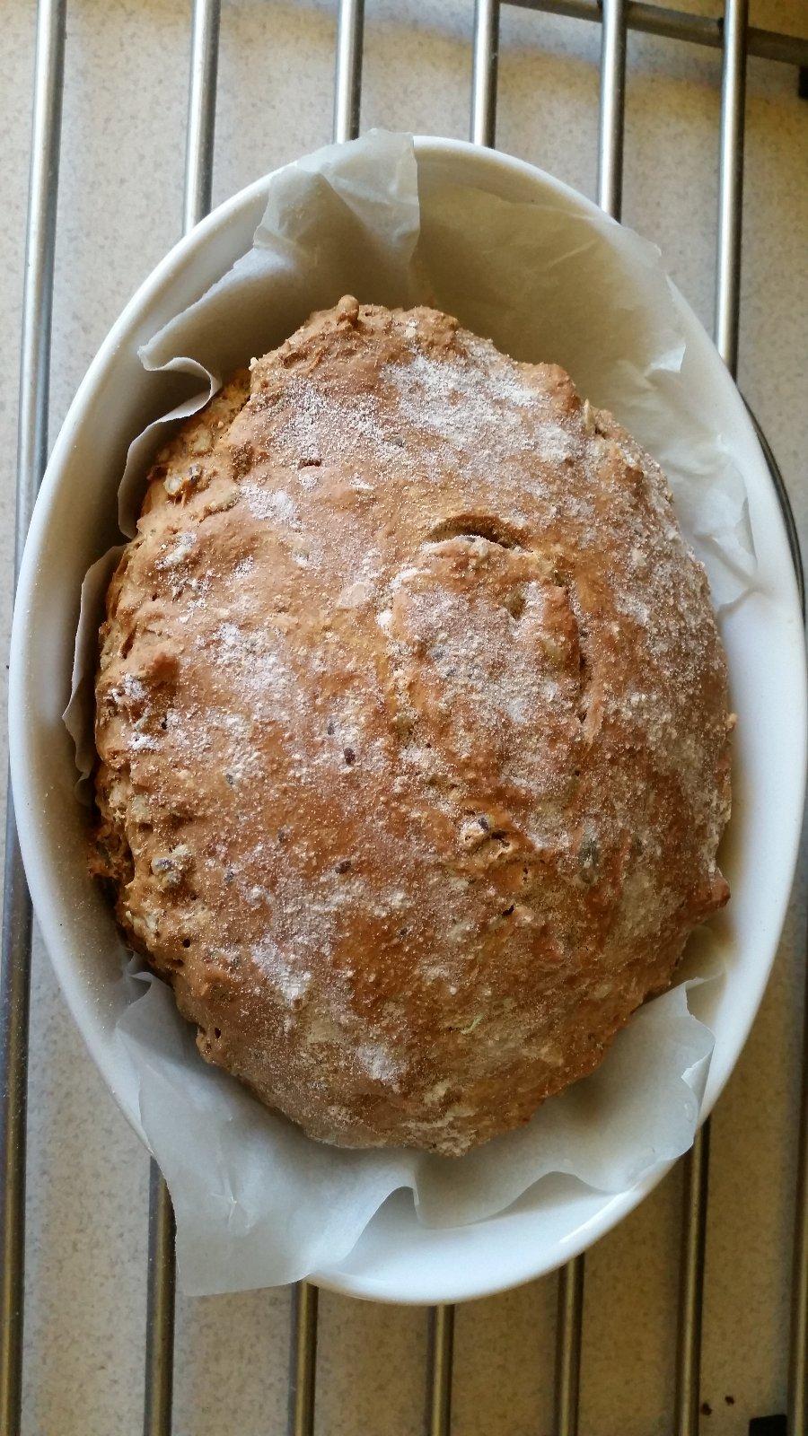 Môj domáci írsky chlebík - 500 g špaldovej múky, 500 g domáceho bieleho jogurtu bez cukru (ak si ho nerobíte doma, môže byť kyslá smotana alebo grécky jogurt z obchodu), 1 ČL soli, 1 ČL cukru a 1 ČL sódy bicarbony a rôzne semienka (ja som dala slnečnicové, tekvicové a ľanové), všetko sa spolu zmieša vidličkou, aby sa suroviny spojili - POZOR, nemiesi sa! Vytvarujeme bochník a pečieme vo vyhriatej rúre v sklenenej alebo hlinenej nádobe, ktorú si vystelieme pečiacim papierom, vrch chlebíka ešte môžeme posypať semienkami alebo pomúčiť. Pečieme na 180 °C cca 45 minút, kým nie je kôrka pekne hnedá. Po upečení necháme na mriežke vychladnúť, chlebík je vnútri mäkký a má chrumkavú kôrku, vydrží niekoľko dní. Je fakt výborný, ľahký a vhodný aj pri diete, keďže je zo špaldovej múky a neobsahuje kvások 🙂